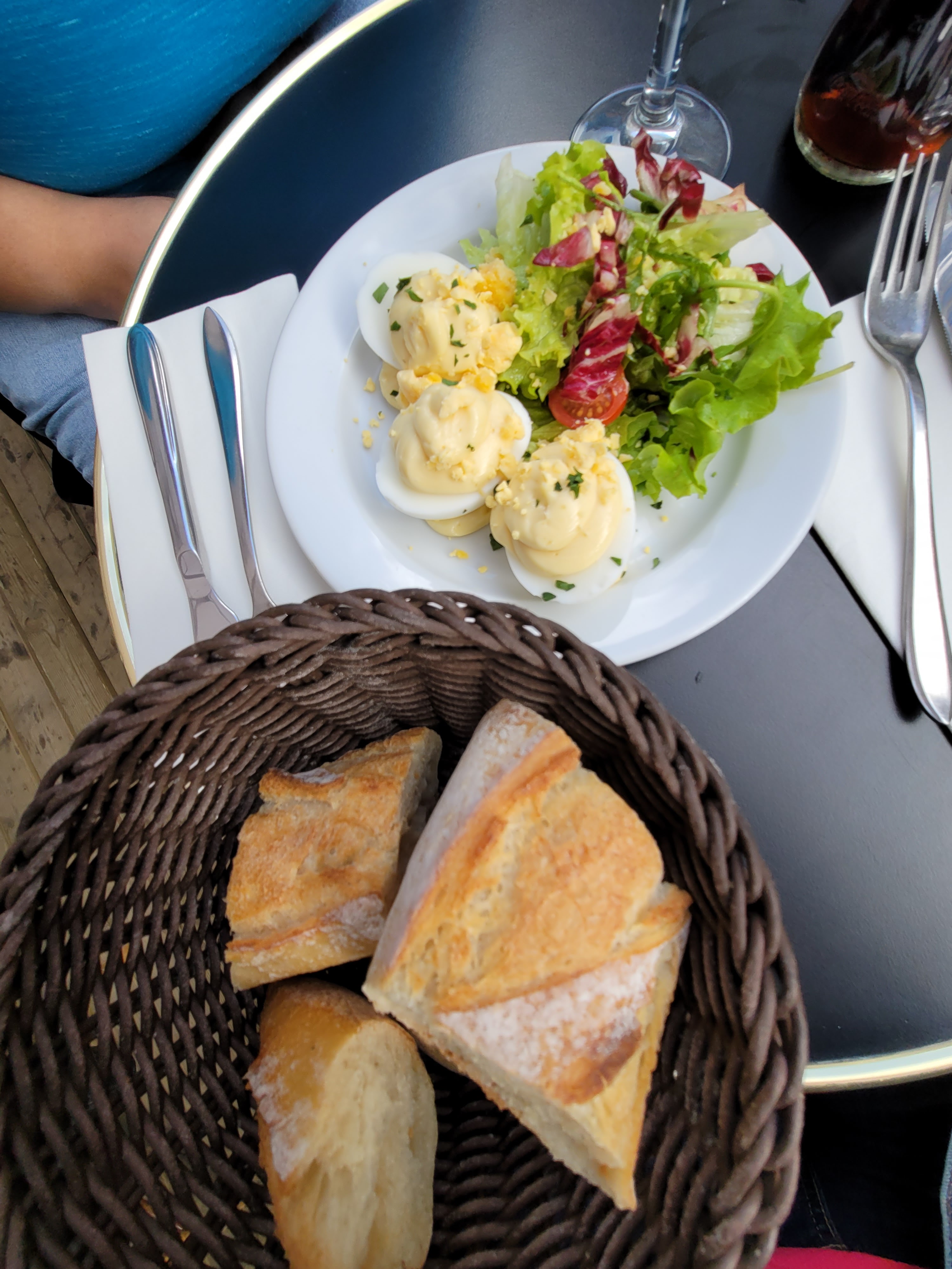 Expériences mitigées. La première nuit sur la terrasse à l'étage était vraiment bien. Tous les membres de notre groupe de quatre étaient satisfaits de leur repas et de l'ambiance. Le lendemain matin, deux d'entre nous sont revenus prendre un café/thé et les meilleurs croissants de tous les temps (livrés en main propre dans une pâtisserie voisine). Lundi soir, nous sommes rentrés et ce fut un désastre. Les problèmes de cuisine ont eu un impact sur l’expérience de chacun. Personne n'était satisfait de sa nourriture ; rien ne s'est bien passé. Un membre de notre groupe n'a même pas pu manger son « ris-de veau », la sauce pour le bœuf et le canard était identique et le poisson n'est jamais arrivé car le client a annulé la commande car tout le monde avait fini de manger. Cela aurait été un moment horrible pour les serveurs compte tenu des problèmes de cuisine. Ils nous ont cependant donné, en tant que clients, le sentiment que nous étions déraisonnables et que nous étions en faute. Gestion du stress mal gérée et par conséquent très mauvaise note - une étoile pour le repas final. Ayez-en trois à cause des deux autres bonnes expériences.