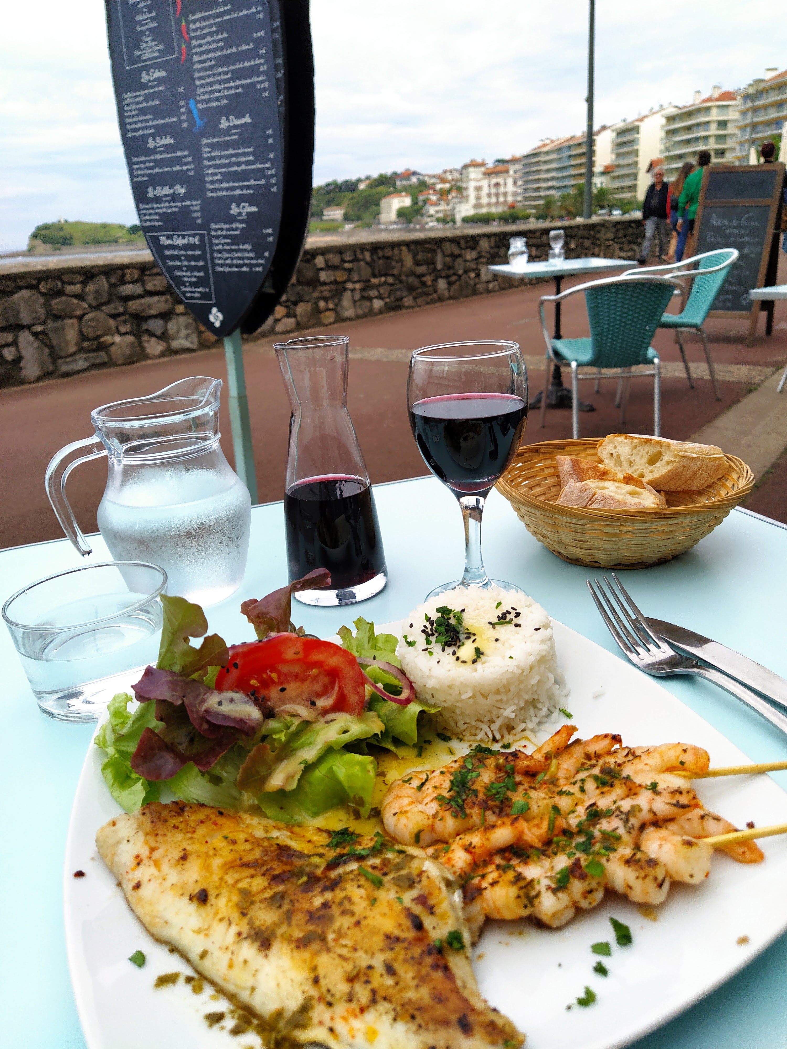 J’ai choisi ce restaurant du à la proposition du menu enfant qui change du Steack frite traditionnel ! Accueil au top Mon fils c’est régalé avec la brochette de crevettes riz & moi avec mon poisson le tout face à la mer… que demander de plus !