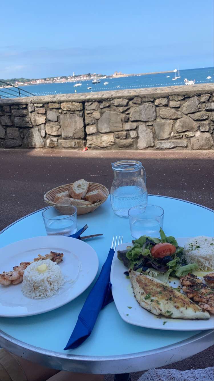 Magnifique vue sur la baie de St Jean de Luz. Dans les assiettes, bonne qualité et bien servi.