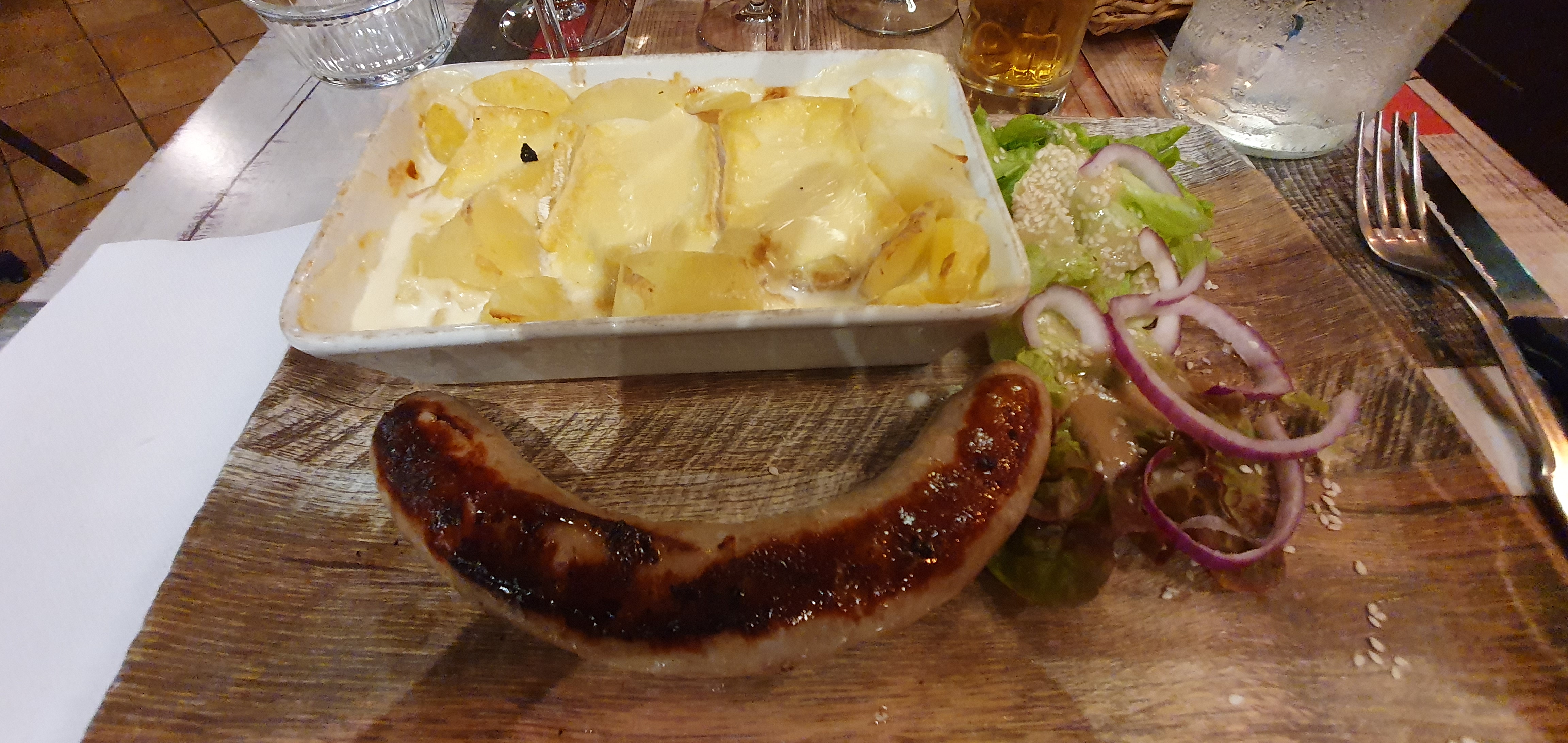 Vite déborder pour un rien les knacki de mon fils était sec donc réchauffer au micro ondes nos salades très très simple et nous avions encore faim après les crêpes sec elles aussi et je vous parle pas de la bière pression juste dégueulasse ..... tout sa pour 45€ une honte