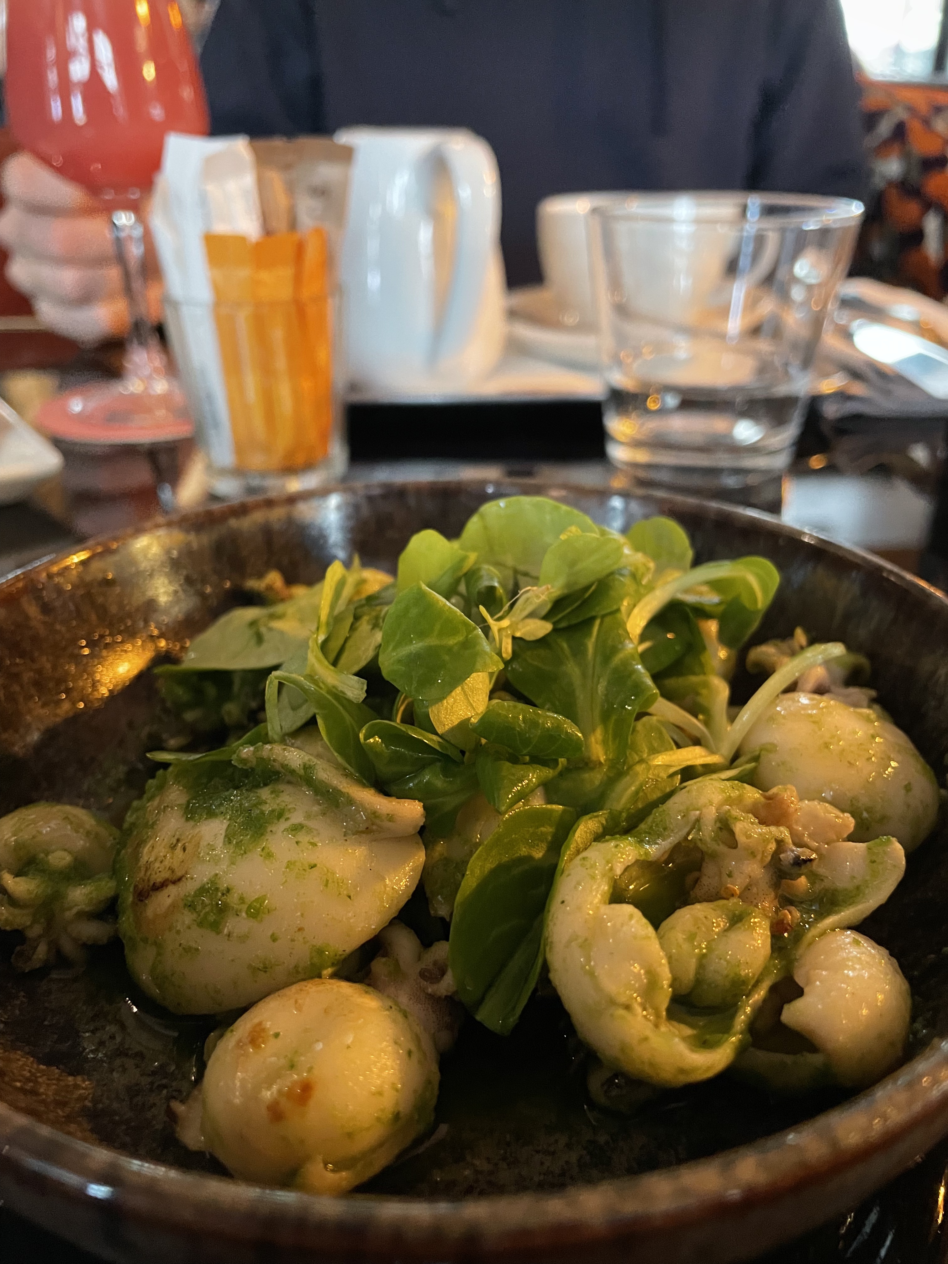 Nourriture très moyenne : pizza à 14euros sans goût avec une pate digne d'une pizza surgelée, calamar fris sans goût. Je n'attendais rien de spécial mais le prix est très élevé pour cette qualité. J'ai fait part de mes remarques au serveur qui m'a précisé que la nourriture n'était pas surgelée, on peut tout de même se poser la question face à la variété de la carte. Néanmoins, service réactif bien qu'étant un peu énervé par mes remarques mais me proposant de prendre un autre plat. J'ai préféré décliner face aux déceptions des premiers plats. Nous avons fini dans un autre restaurant, moins cher et meilleur dans le même quartier. Ne recommande pas, la rue regorge de jolis endroits avec de la nourriture de qualité.