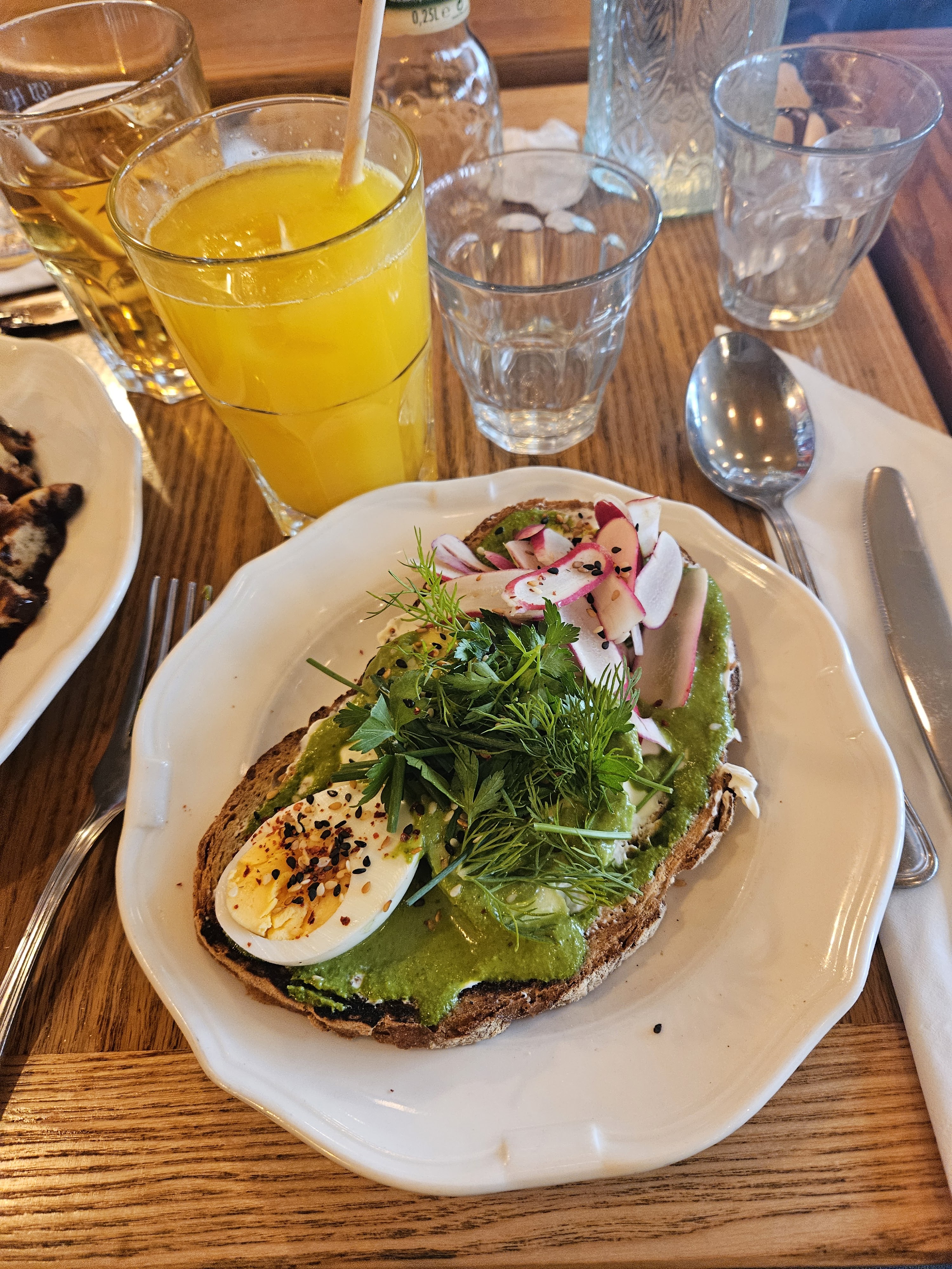 Super endroit pour le petit-déjeuner. Belle table à l'extérieur pour regarder le monde passer. Excellent petit déjeuner, surtout le jus d'orange fraîchement pressé. Un service si délicieux, si sympathique💗