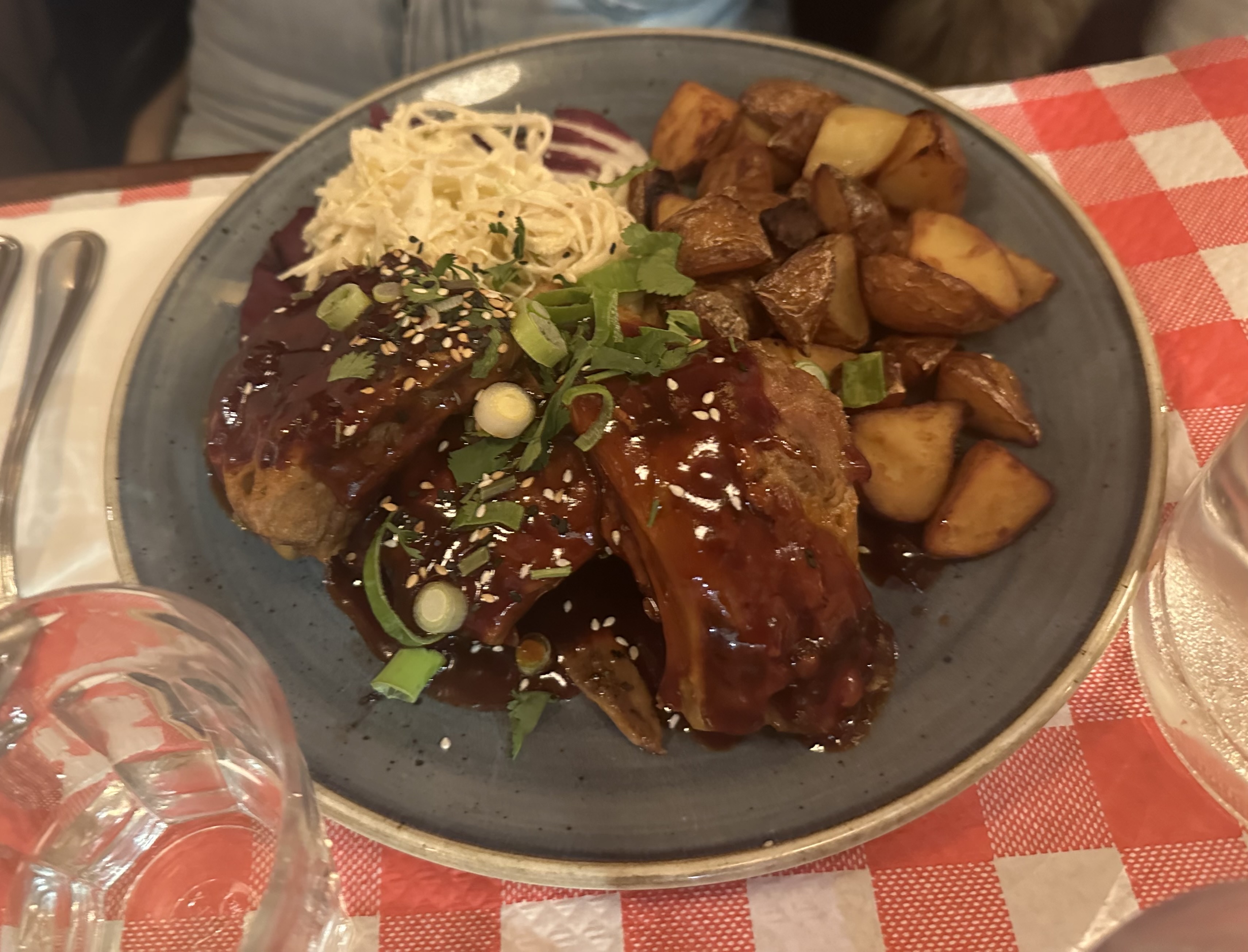 Quantité satisfaisante, en revanche ne vous mettez pas aux tables en face du bar, le passage y est tellement monstre que vous ne profitez même pas de votre repas. 😓