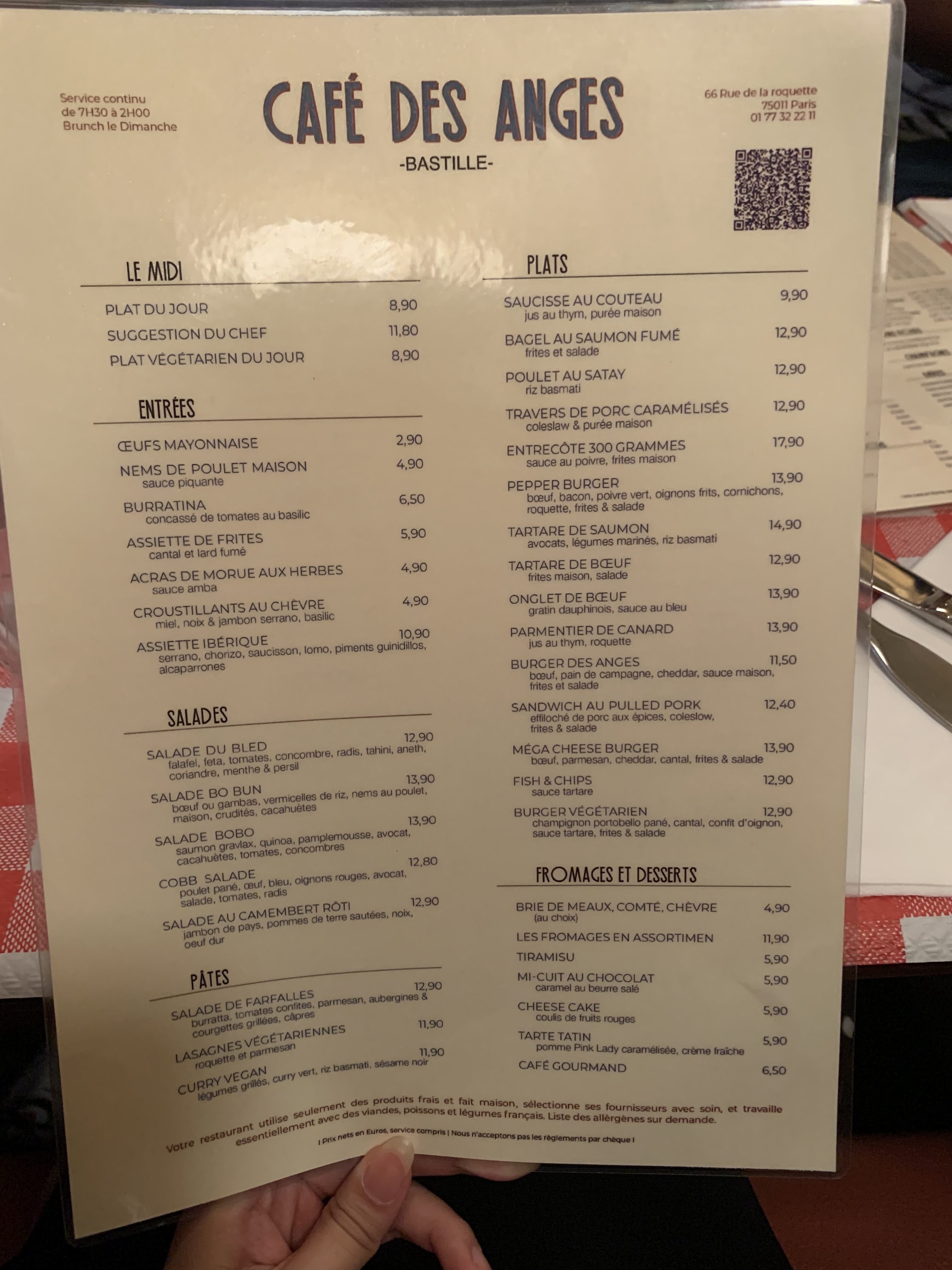 Nous avons passé un moment très agréable au Café des Anges. On dit que le meilleur compliment des gens en matière de nourriture est le silence et nous sommes certainement restés sans voix en nous plongeant dans nos repas spéciaux du brunch.