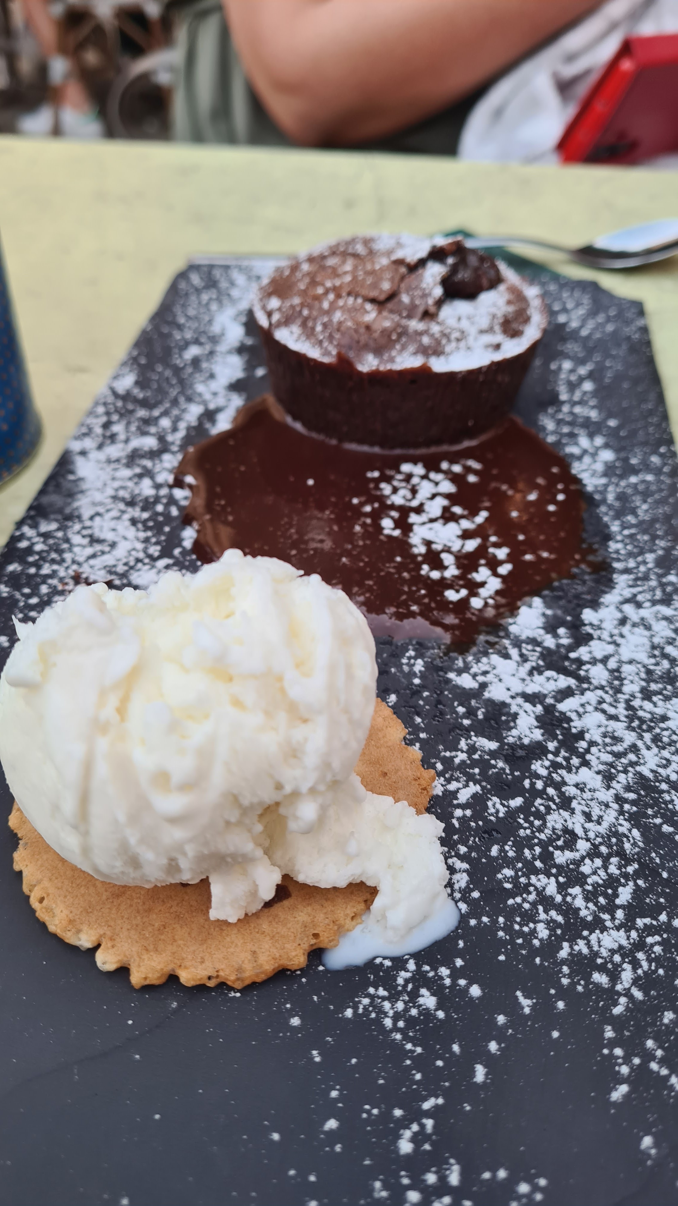 Arrivé à Valbonne et entré sur la place centrale dans une atmosphère charmante, une foule et des odeurs fantastiques. Nous avons dû nous arrêter pour prendre un verre et un dessert et avons trouvé un super endroit. Service génial et je recommande de venir.