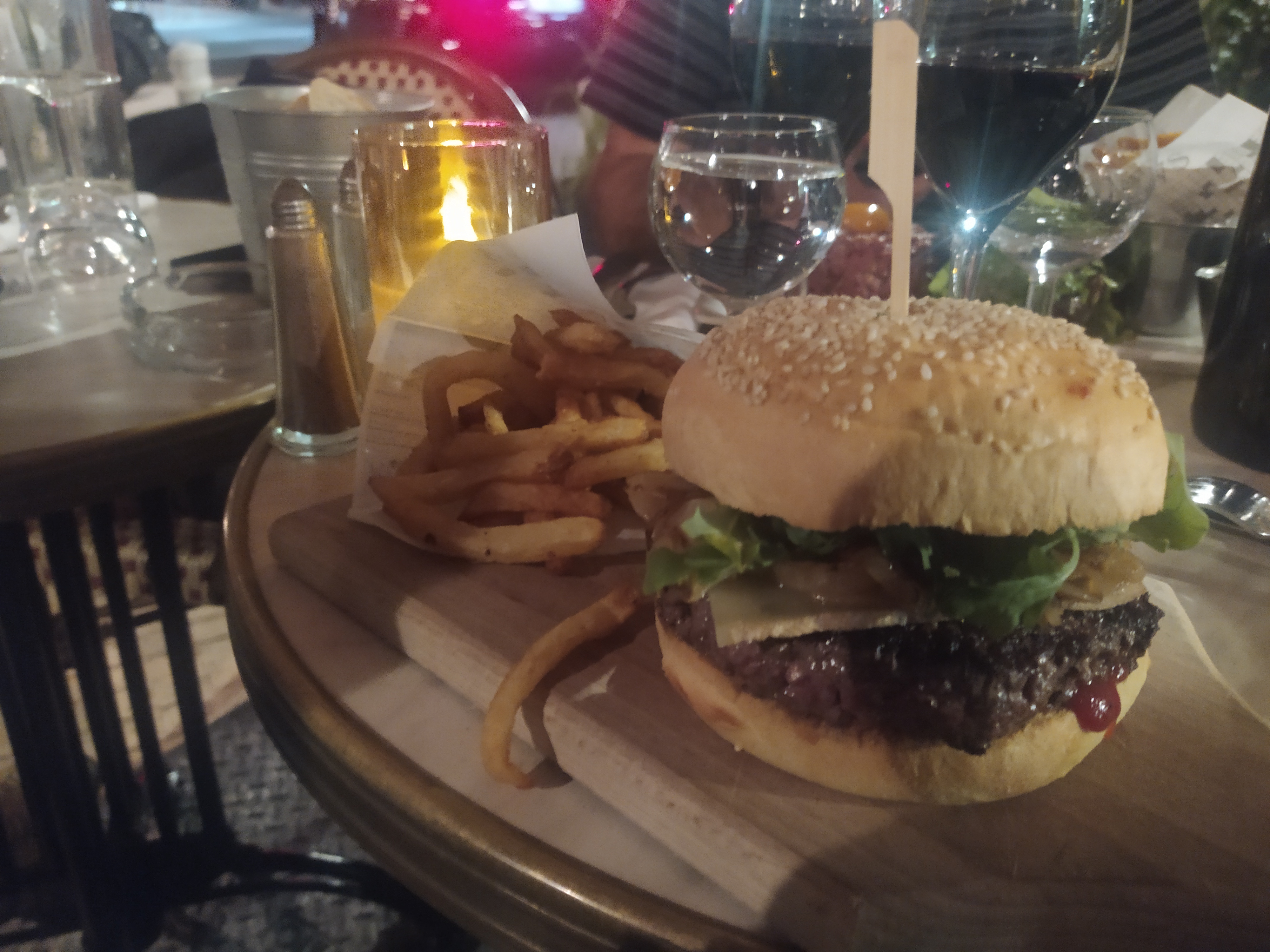 Nous étions deux, nous n'avions pas réservé, ils nous ont tout de suite trouvé une place même si c'était un peu sacrifié. Nous avons passé un excellent steak avec de la salade et des frites. Dommage pour la chaleur (nous étions à l'intérieur sans climatisation). Essayer