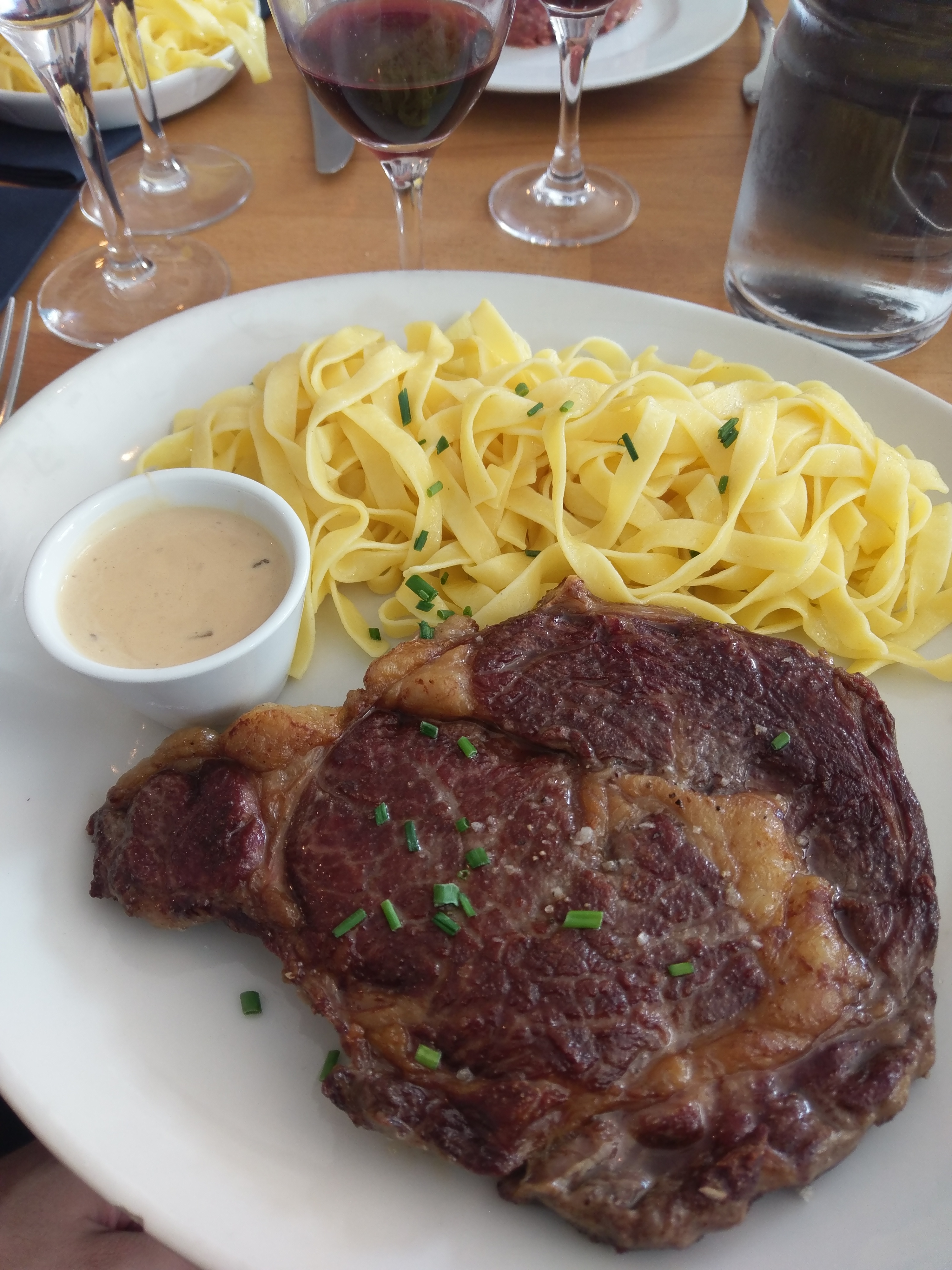 Dîner très agréable dans un bistro authentique avec un très bon steak et un excellent dessert. Service amical.