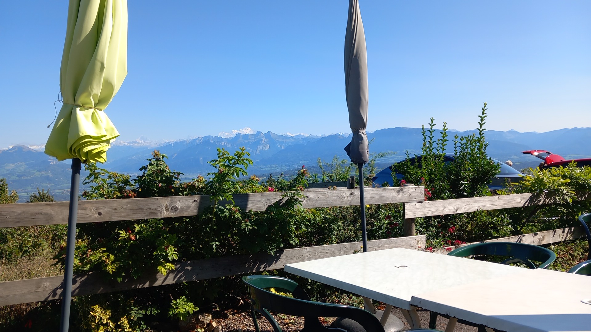 Café fabuleux, bons diners, parfois des tartiflettes avec vue sur le Mont Blanc, et le sommet du Salève juste derrière à travers une miniscule foret. Parfois des chèvres en bas, parfois les vaches de la ferme adossée au café. Ça vaut le déplacement.
