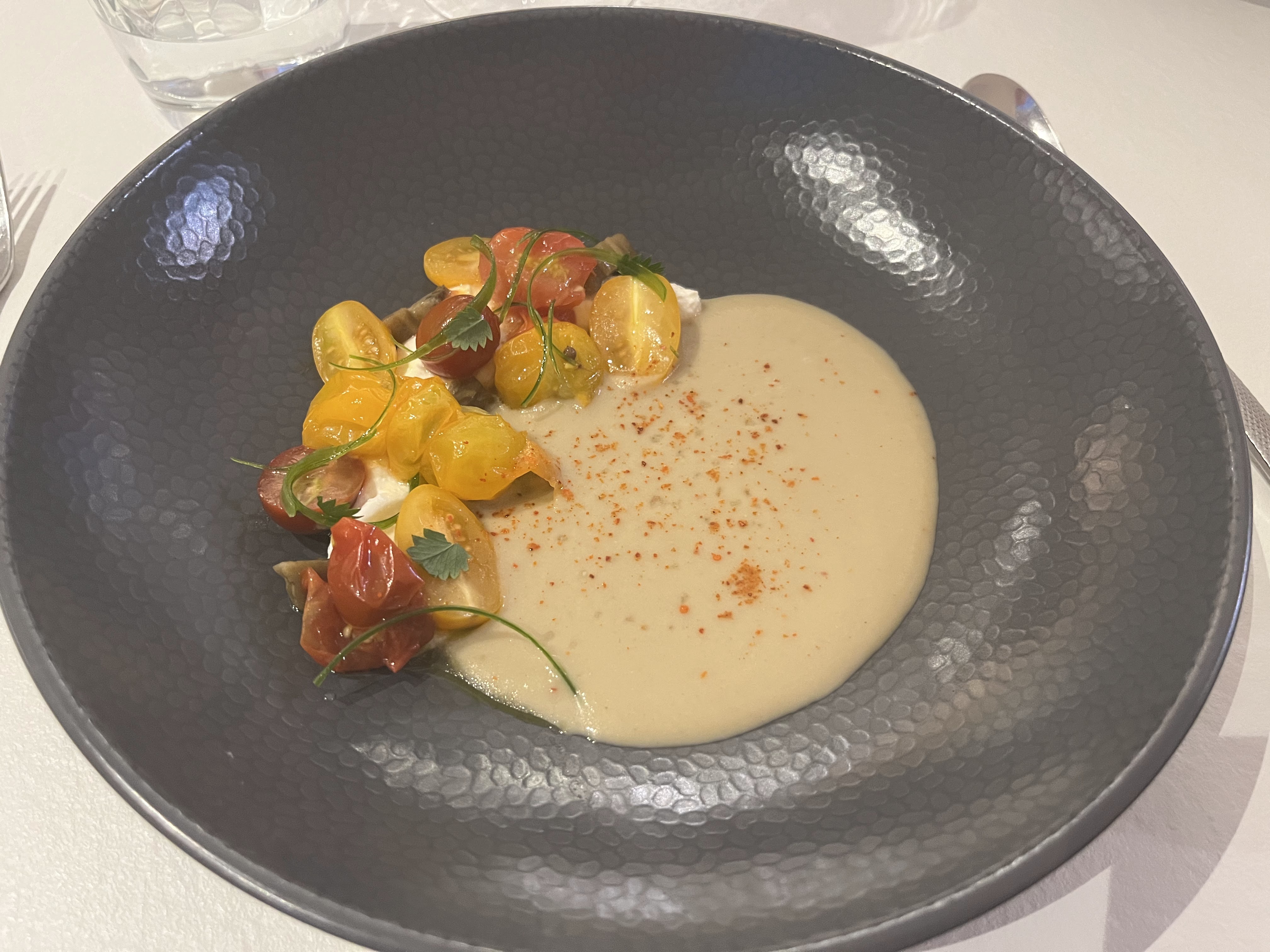 Une photo pour ne pas vous gâcher la surprise de ce restaurant à faire ABSOLUMENT!!!👍👍 Une cuisine raffiné, très bien réalisée, des produits et vins de qualités. Un personnel au petit soin. Merci pour ce superbe moment.