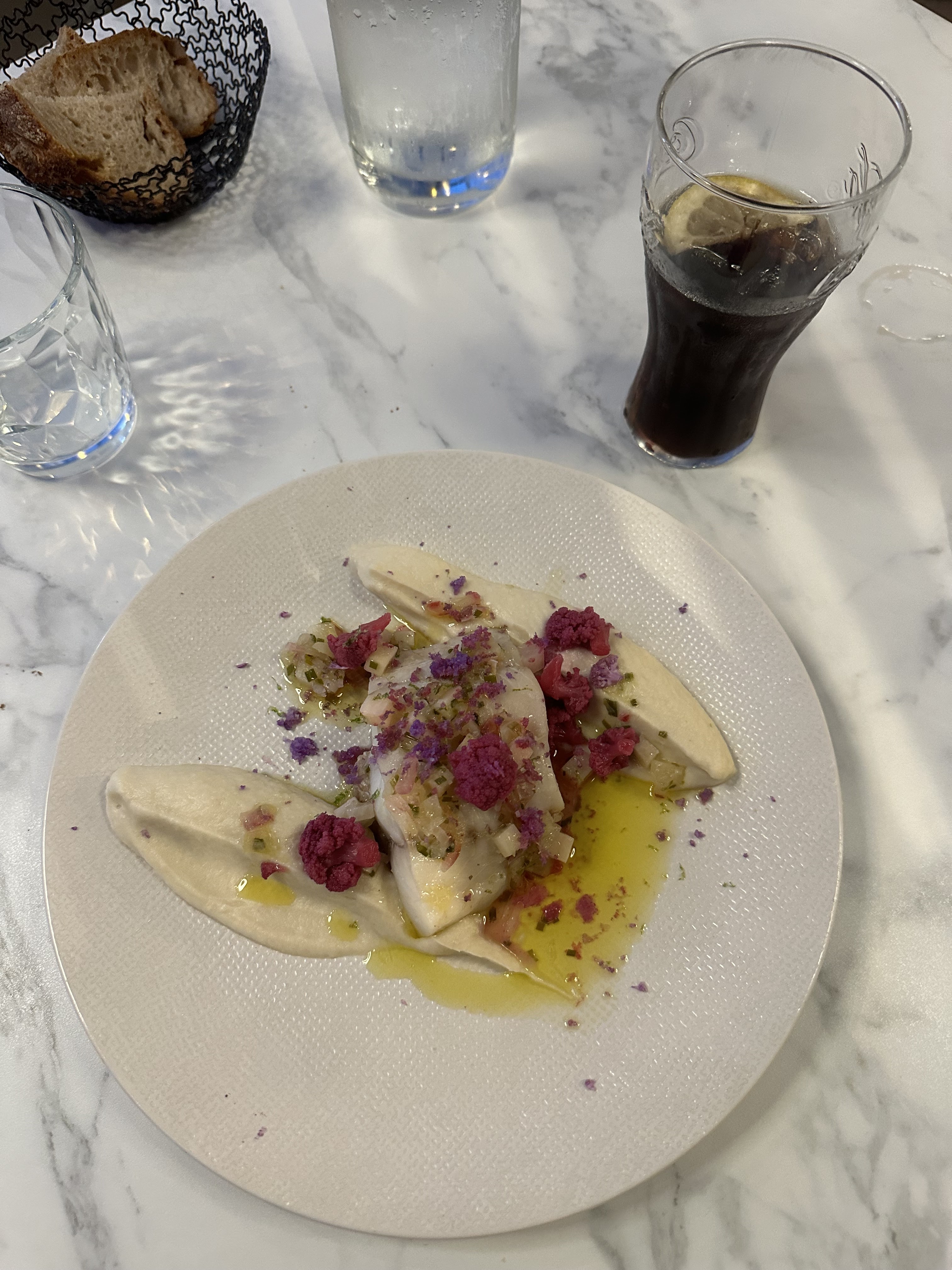 Quand les plats arrivent sur la table en moins de 5 minutes, c’est au mieux acheté à une centrale et au pire carrément surgelé. Et à en juger l’absence de saveur et la sur cuisson de mon cabillaud aucun doute sur la 2nde option. Bien triste pour 25€.