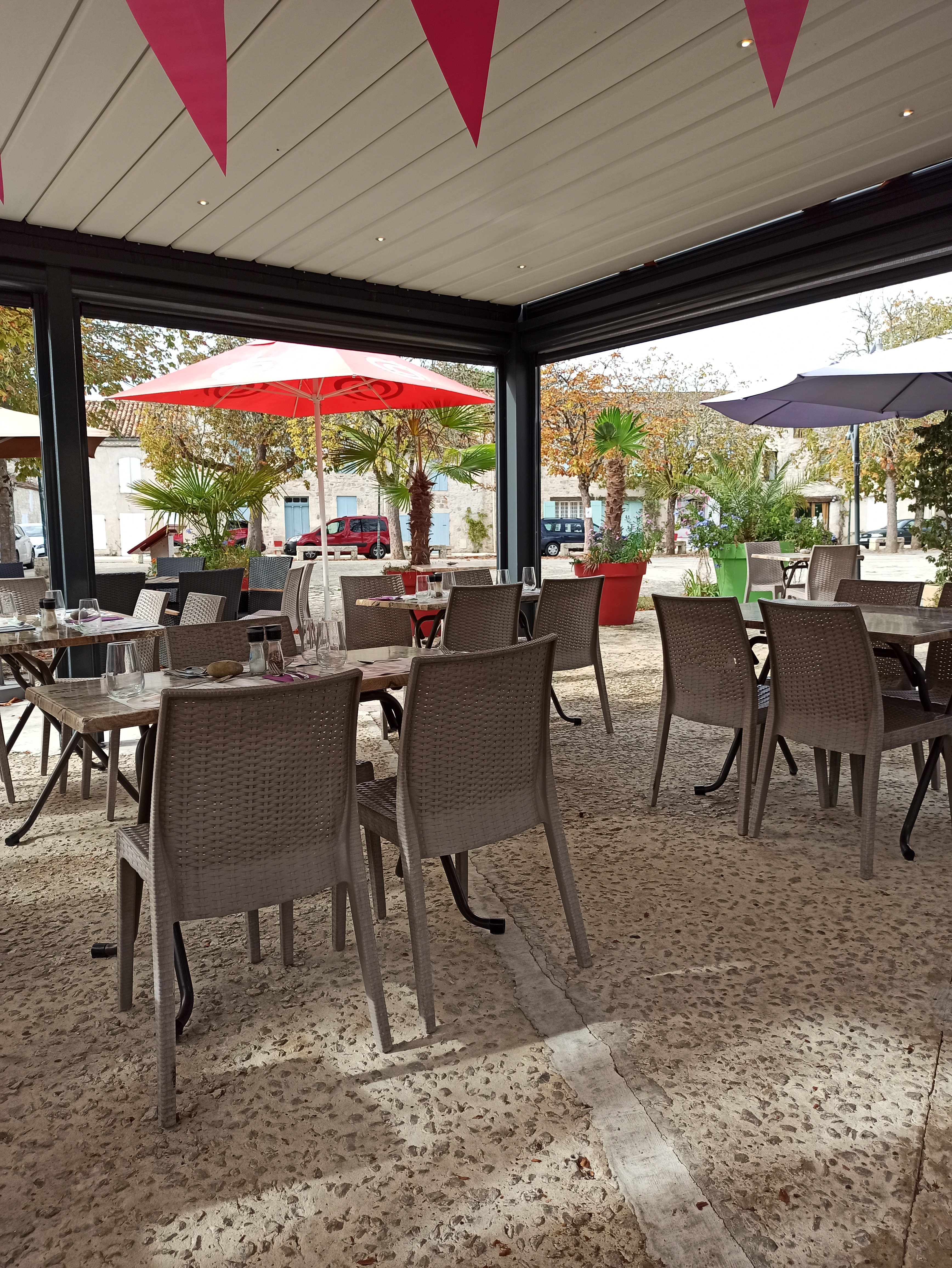 Grande terrasse très agréable située sur la place centrale de la bastide historique de Vianne.