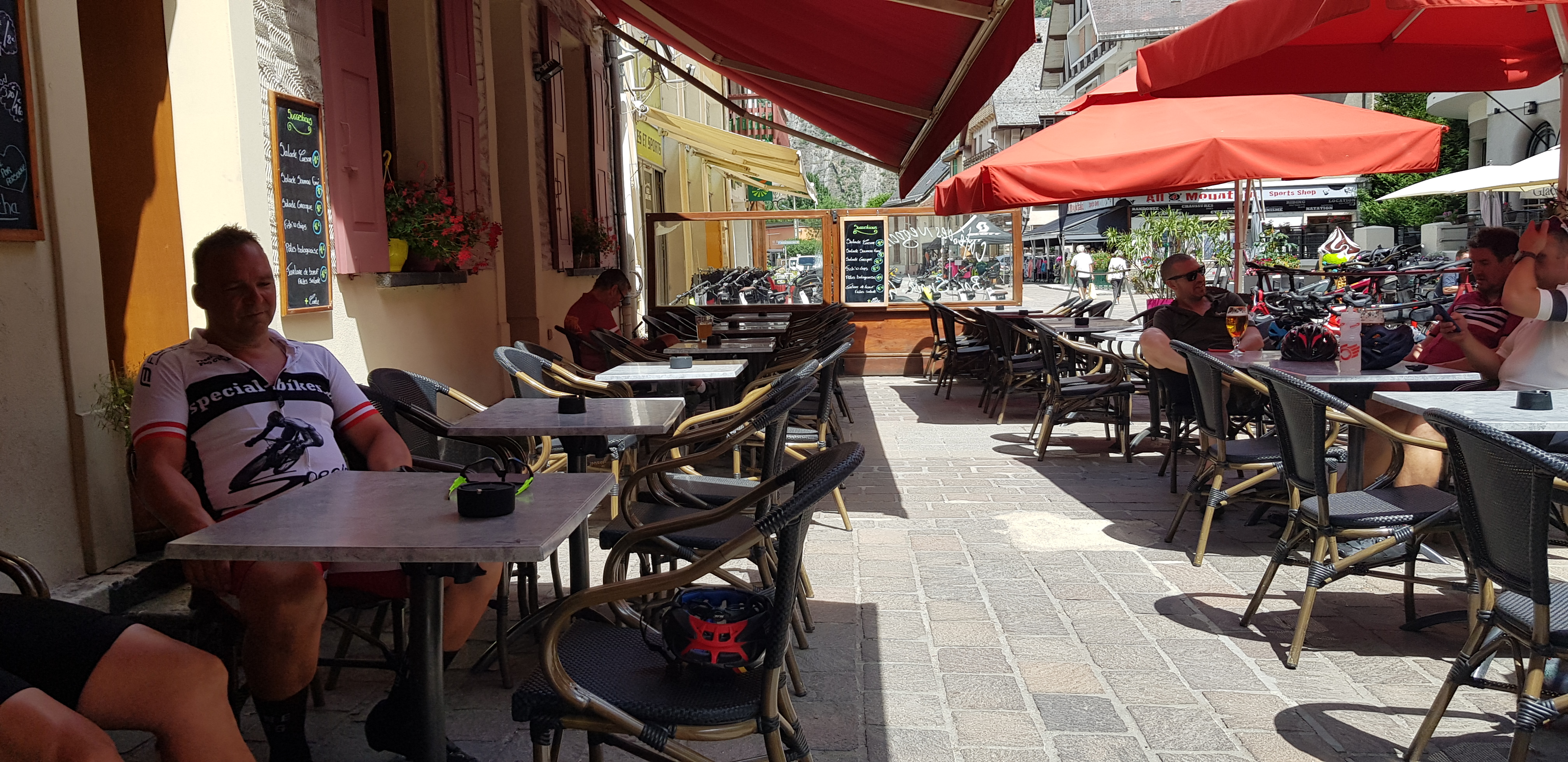 Passage après une sortie vélo. Prendre un verre et un pti plat avant le souper