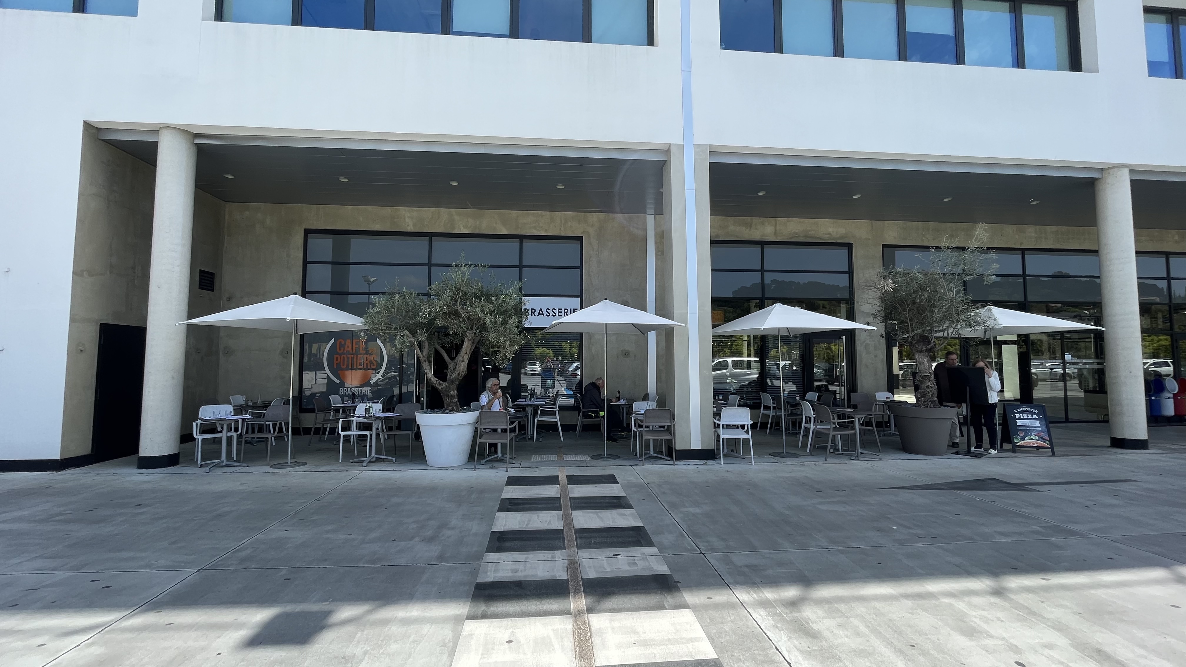 Petit restaurant au sein du supermarché Leclerc. Ambiance bistrot calme avec musique lounge. Le cadre est propre, agréable et lumineux, ils utilisent bien la terrasse qui donne sur un beau point de vue de l'arrière pays (dommage toutefois qu'il y ait le passage de quelques voitures qui viennent se garer dans le fond du parking). Plats simples et bons, service agréable et rapide. Prix cohérents.