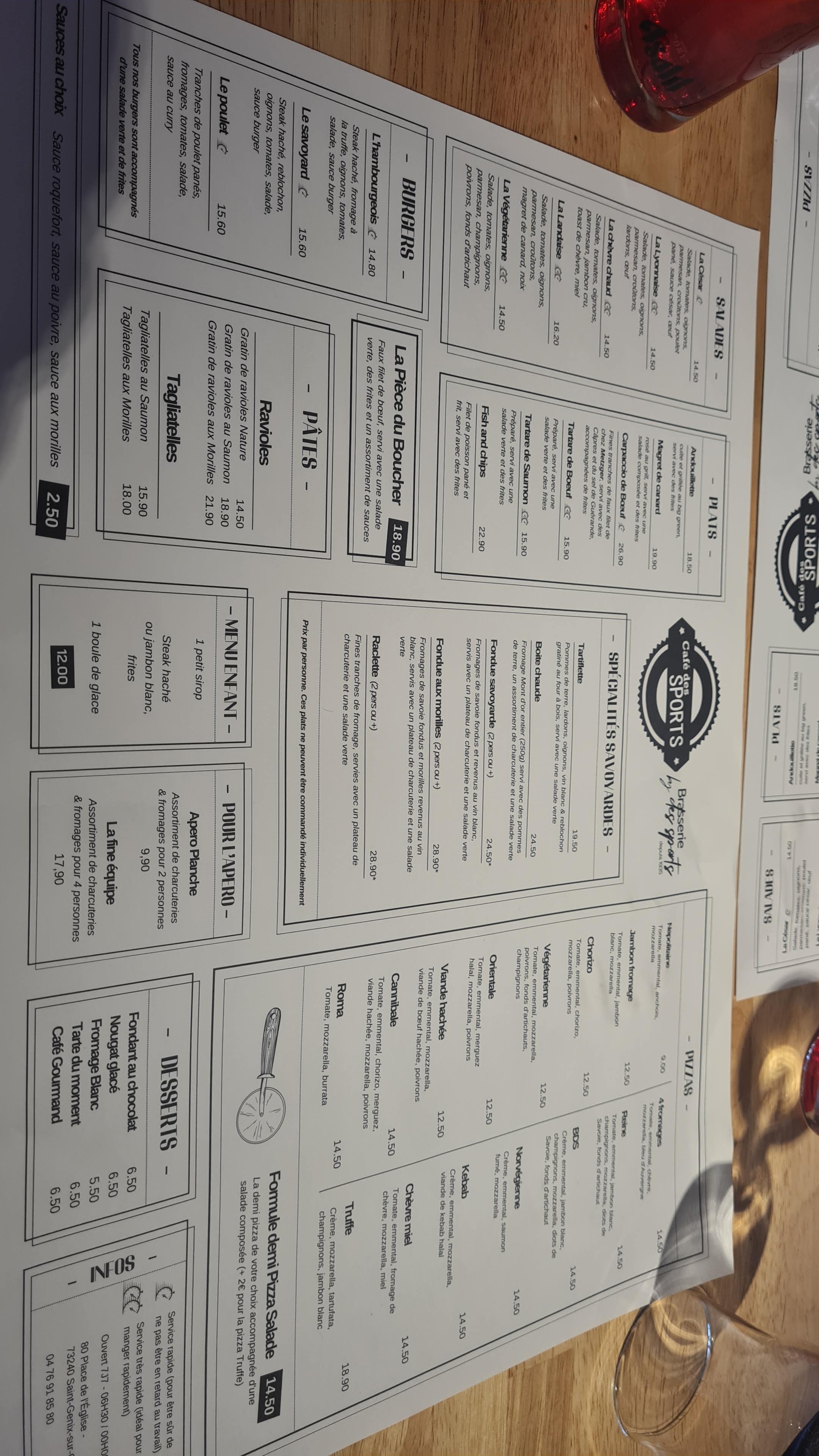 Petite pause repas dans le centre de St Genix après quelques efforts en 2 roues, on est ravi de pouvoir s'y offrir une récompense gustative. Le gérant est fort sympathique, la musique, les échanges et l'ambiance générale y vont de bon train, il fait bon de s'y rendre si vous passez par St Genix ! On n'y a mangé que les plats chauds et c'était +que suffisant au vu de la générositédes plats ! Gratin de ravioles aux morilles pour ma part, côte de bœuf maturée pour Mr, les plats étaient savoureux et très copieux. Cuisson parfaite, petit verre de rouge qui va bien en accompagnement, cette escapade à St Genix est un beau souvenir, je recommande vivement un arrêt au café des sports !!