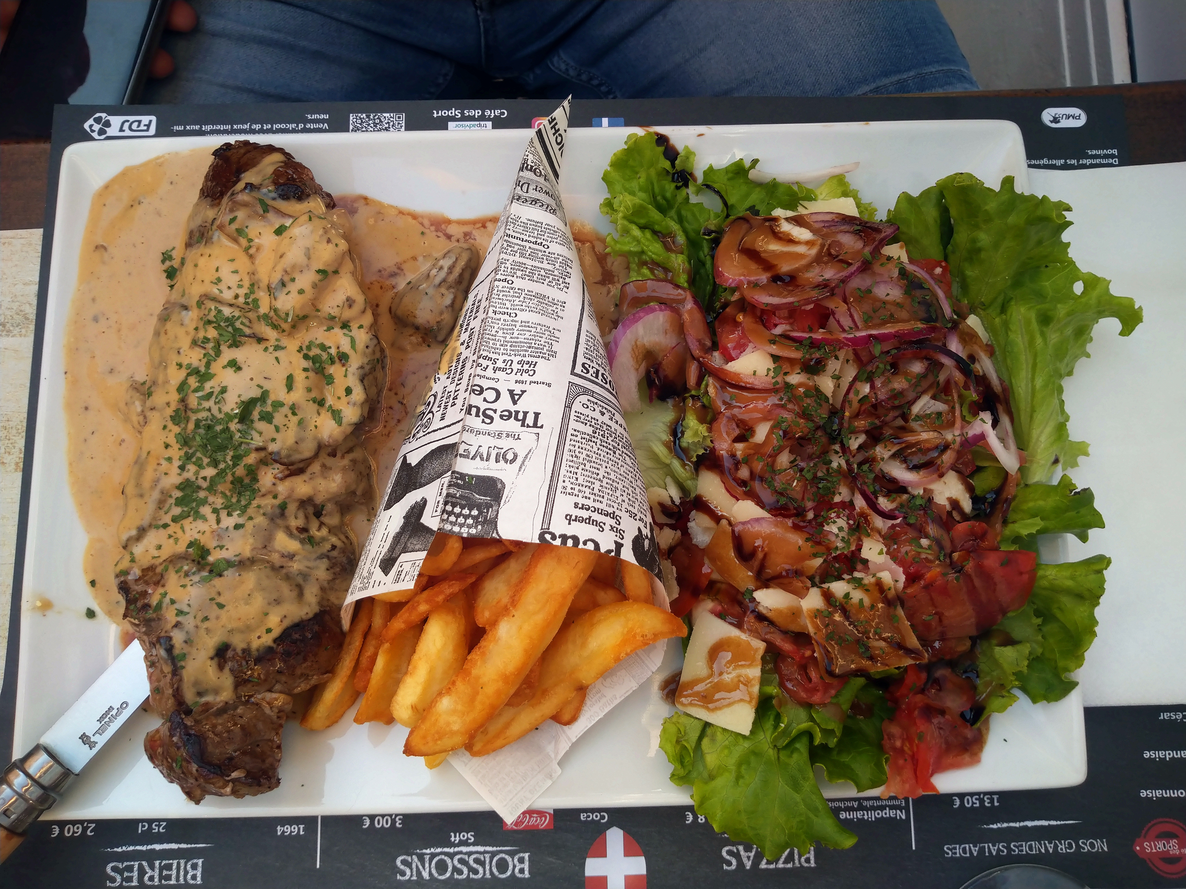 Que dire ... repas simple et efficace !!! Nous avons pris la côte maturee pour 2, sauce morilles ... 2 bons mangeurs ... Au top On ne demande rien de plus pour une brasserie de centre ville ! Repas plus que correct en quantité et en qualité ! Une cuisson parfaite au bbq de l'autre côté de la rue, service attentif et sympathique. Je recommande les yeux fermés !!!