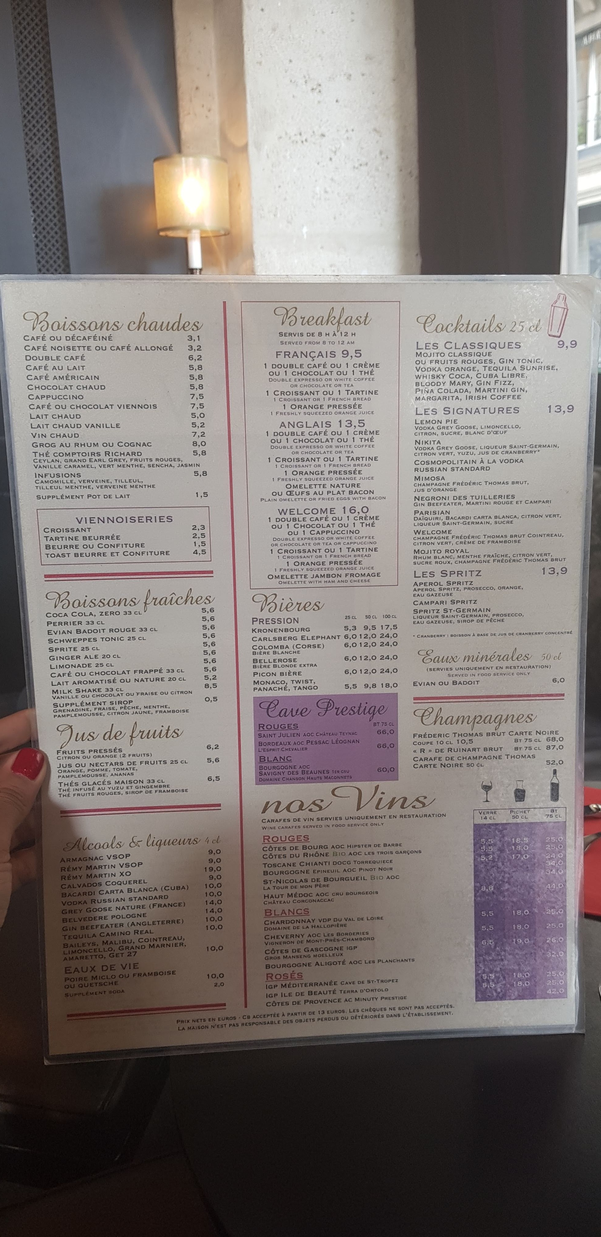 À éviter! Accueil froid, service sans sourire sauf un des serveurs qui a été très sympathique. Rapport qualité/prix très mauvais, desserts sûrement industriels clairement choisi pour une rentabilité maximale car on paye la proximité des Tuileries.