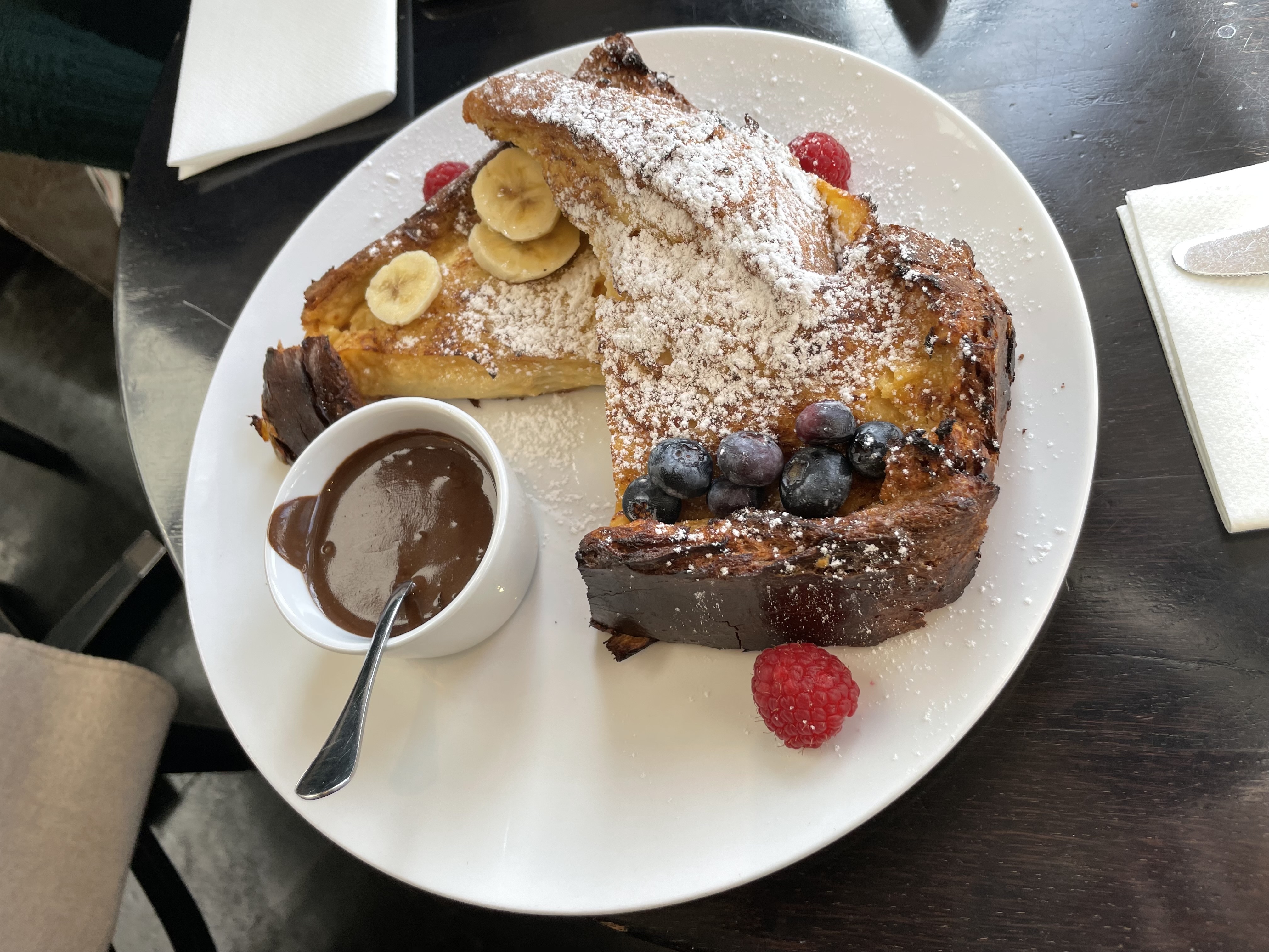 Pas mal mais pas extrêmement sympa. Visité ici vers 11h30 et tout le personnel était prêt pour le déjeuner. Les serveurs parlent bien anglais et je n'ai eu aucun problème à manger ici. Le café n'était pas mauvais. Le pain perdu et les croissants étaient vraiment délicieux.