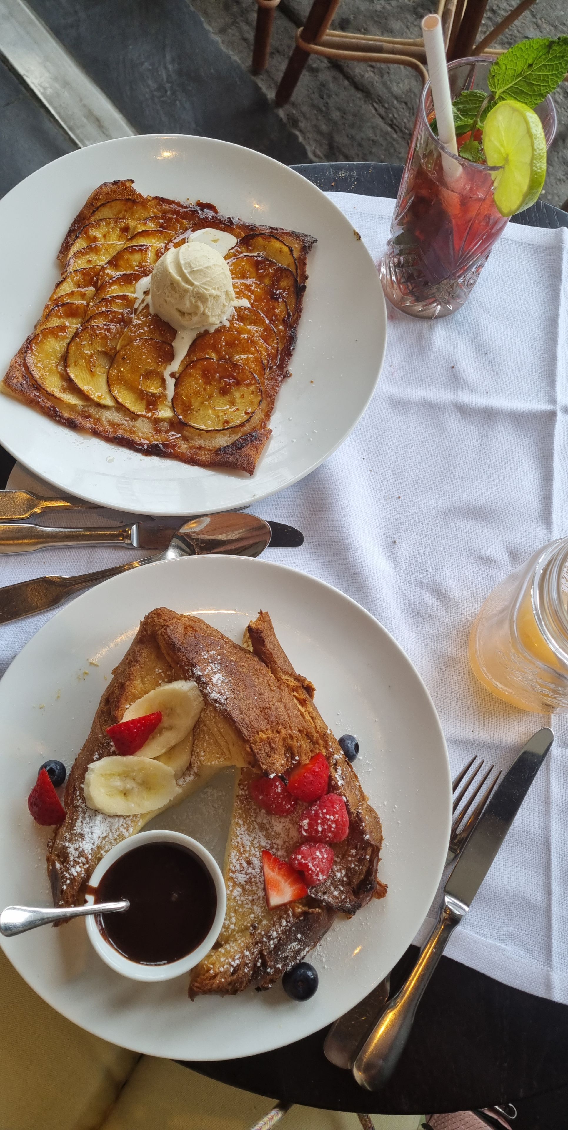 Emplacement très sympa. La terrasse est très agréable. L'intérieur est ok mais pas extraordinaire non plus. J'ai trouvé le service bien et l'équipe agréable. J'ai pris un thé et une brioche perdue qui était très bonne. Les prix sont absolument excessifs mais on s'en doute vu l'emplacement peu de chance que ce soit bon marché. (10€ une crêpe c'est énorme tout de même).