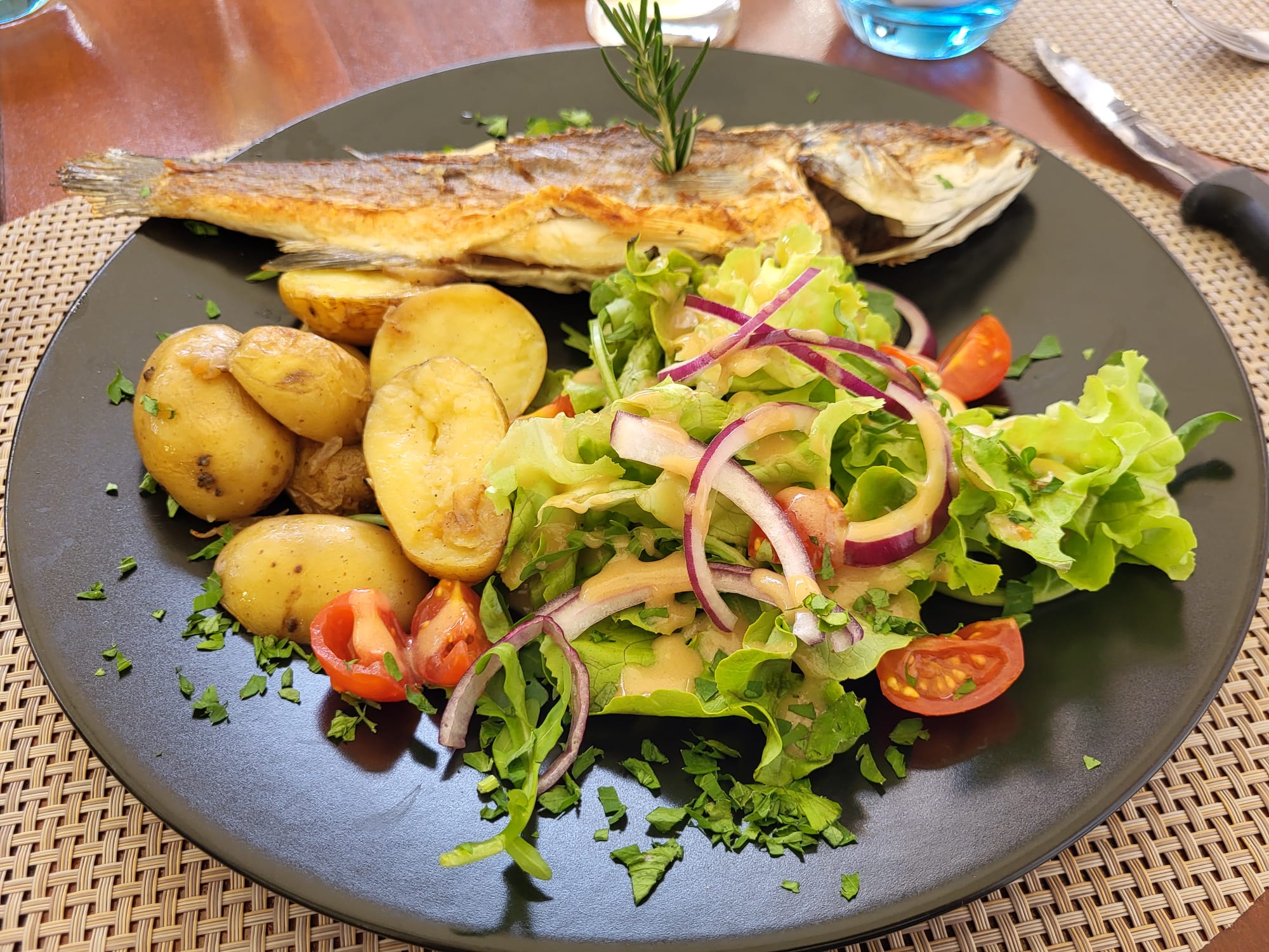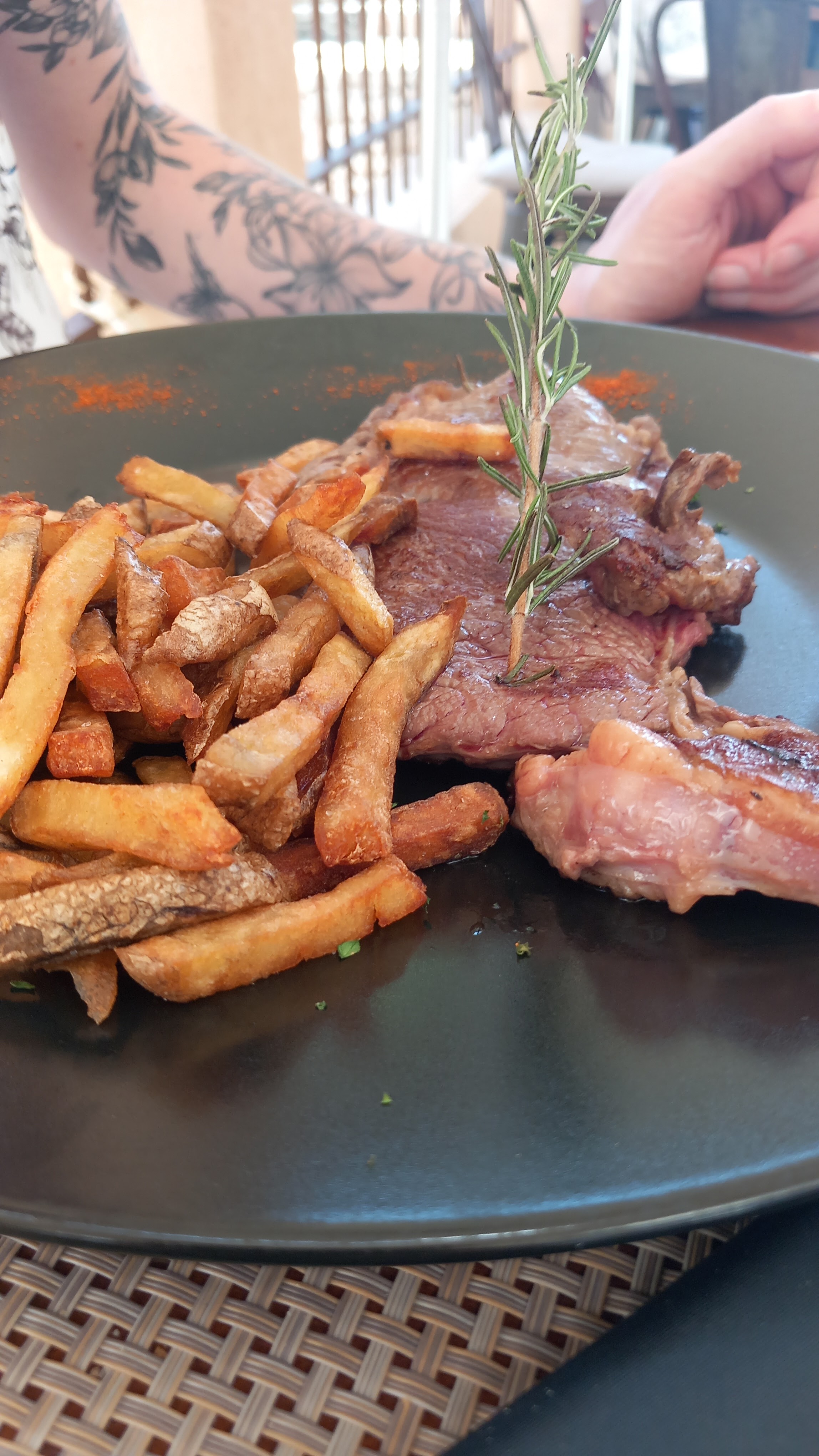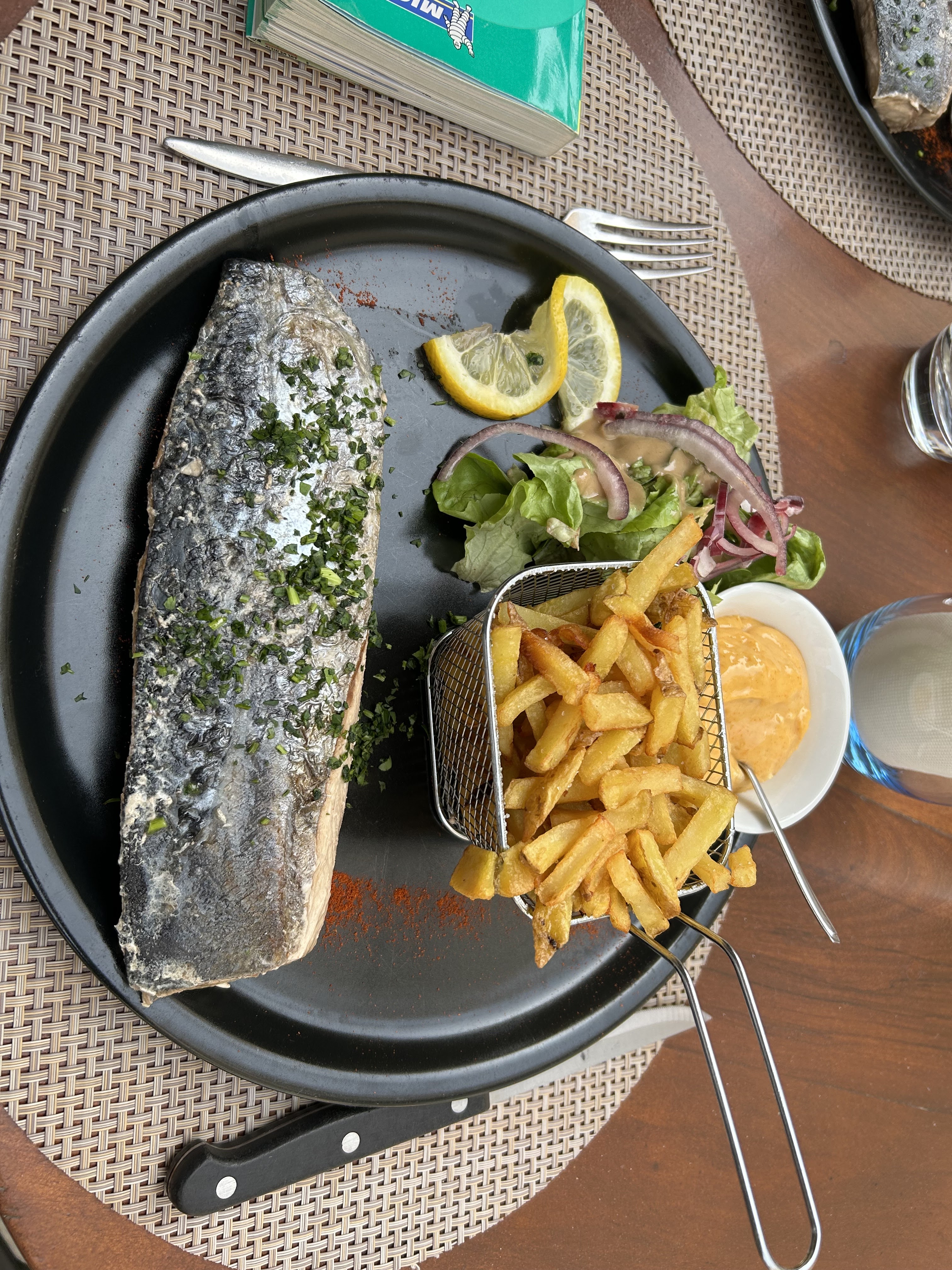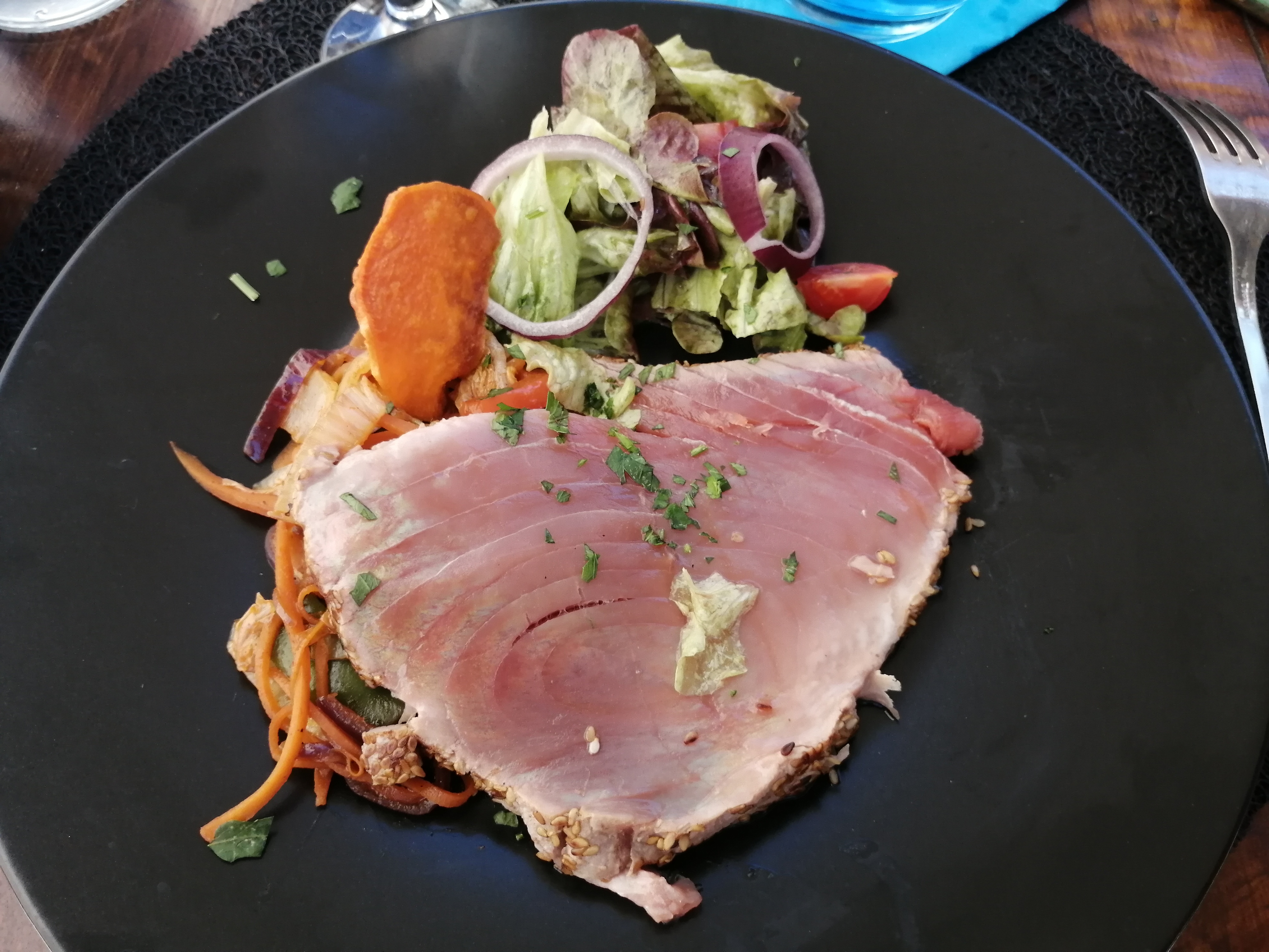 Le menu du jour m’a fait de l’œil, j’ai pas été déçue. Pêche du jour : filet de bonite et sa rouille maison, frites maison et salade. Le long de la citadelle, on était bien ! Une bonne adresse