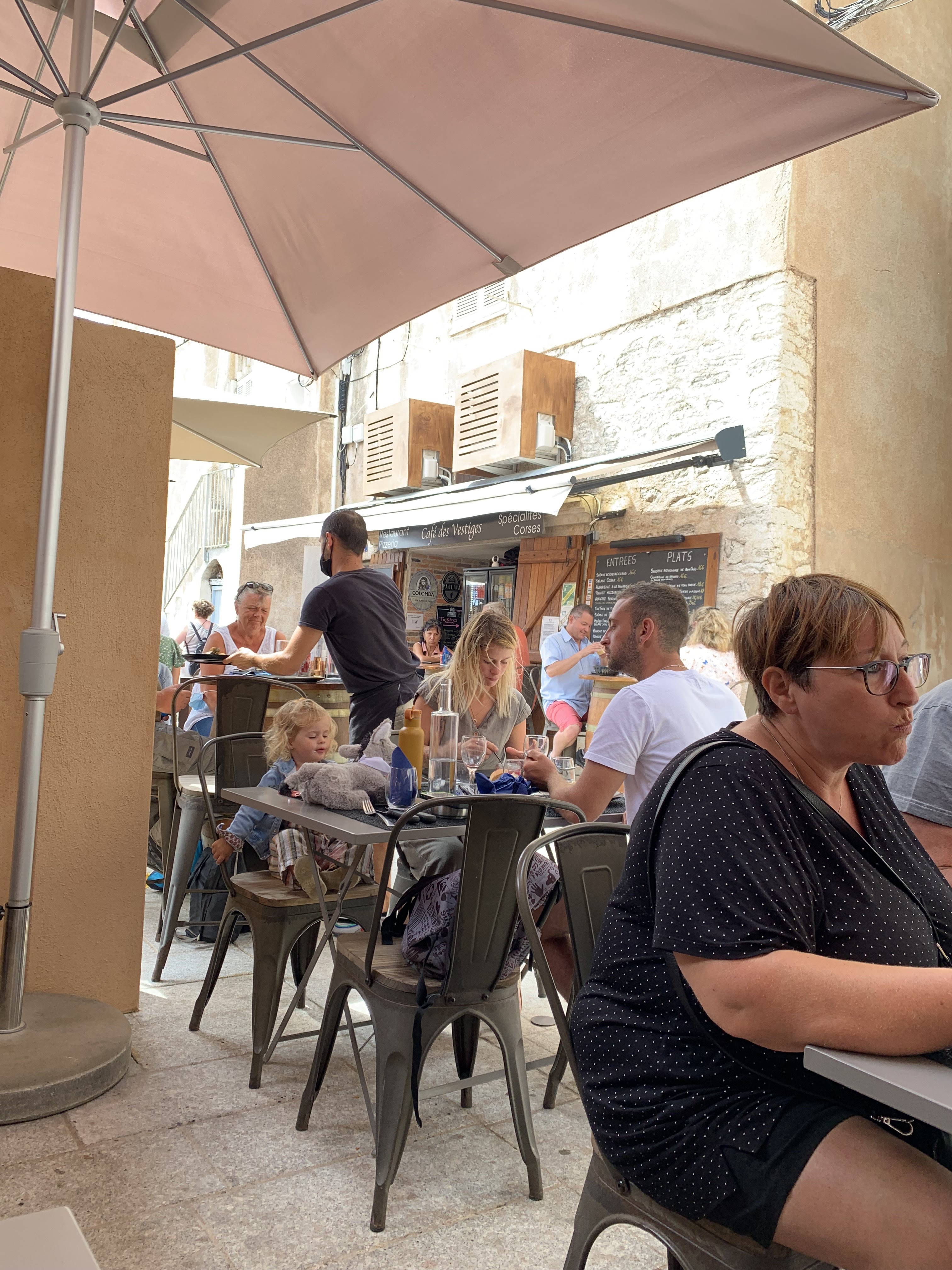 Excellent moment passé le midi à l’ombre d’un parasol. Saucisse artisanale Corse et thon mi-cuit en plats : excellents. Saveurs, présentation des plats et service étaient au rendez-vous. Nous n’avons pas trouvé de défauts. Mousse au chocolat maison très bonne ! Un délice, nous recommandons les yeux fermés 👌