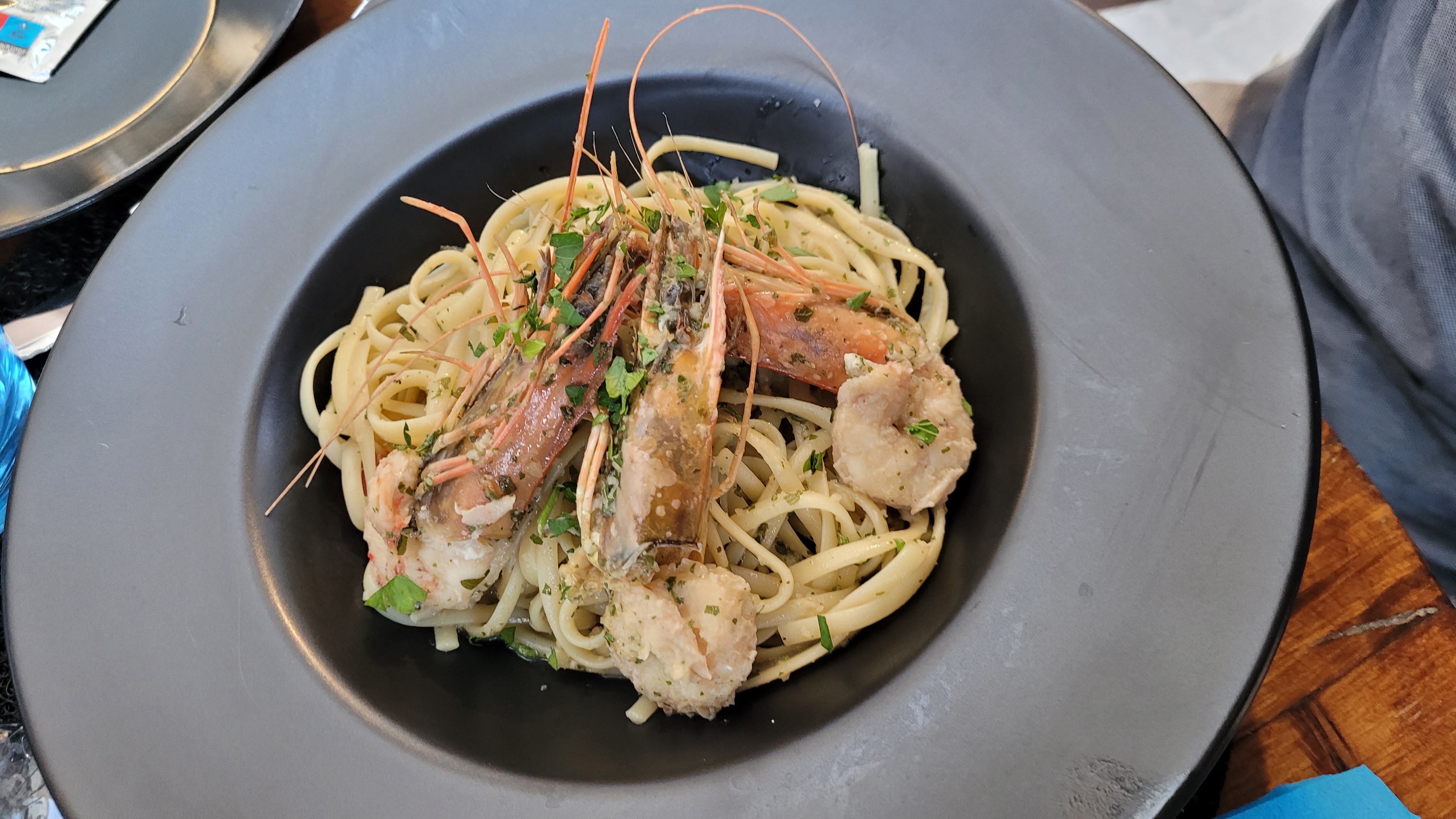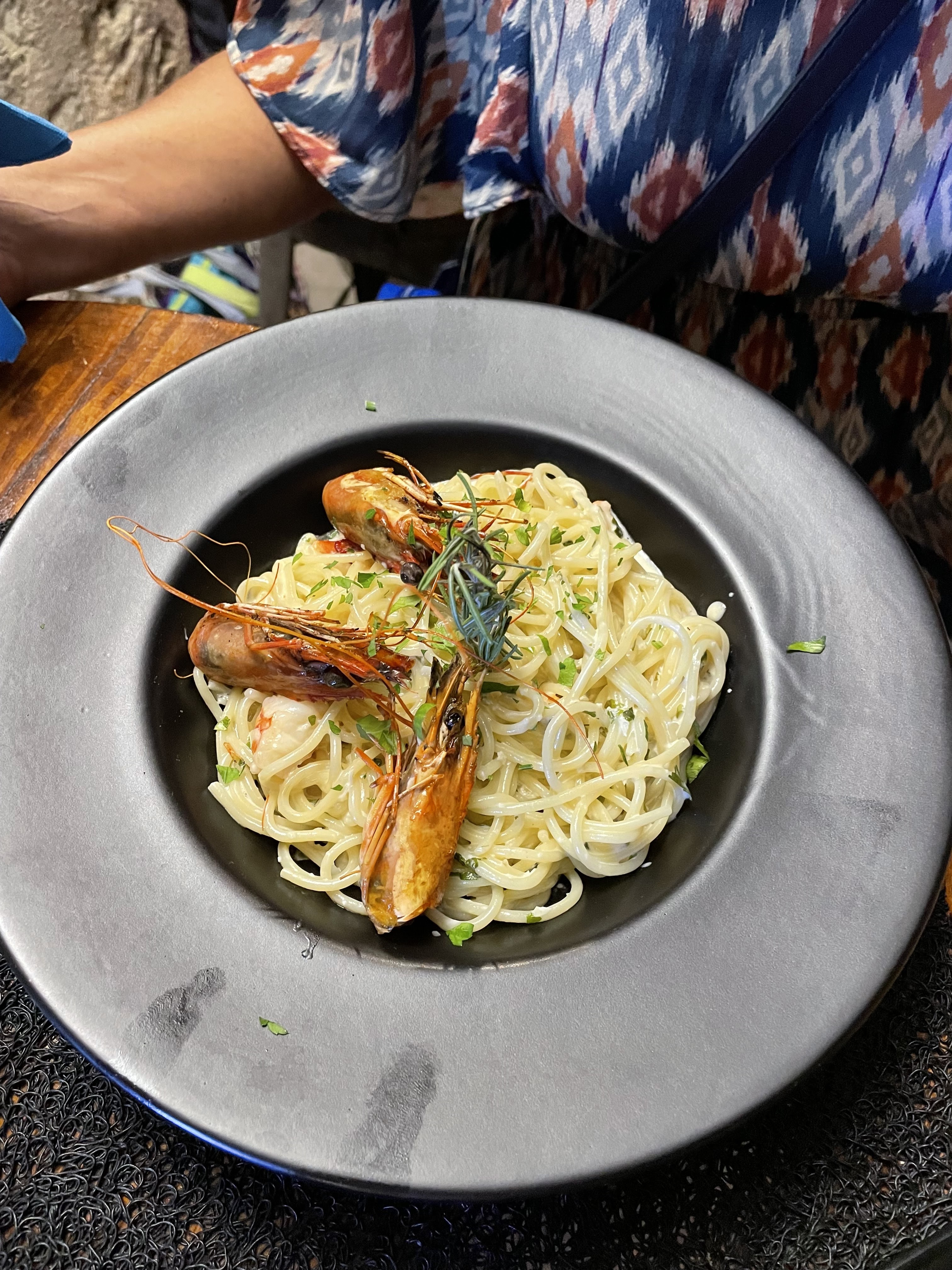 Nous y avons mangé par hasard, sa situation dans une rue passante aurait pu nous faire hésiter mais la gentillesse des serveurs/veuses et la qualité des plats nous ont confirmer notre bonne impression. Notre table était dressée à l’ombre et un gros ventilateur/brumisateurs rafraîchi les clients en période de canicule. Le plat, des linguines aux gambas était très bon et pour un prix correct au vu de l’emplacement. Agréable surprise, nous le recommandons.