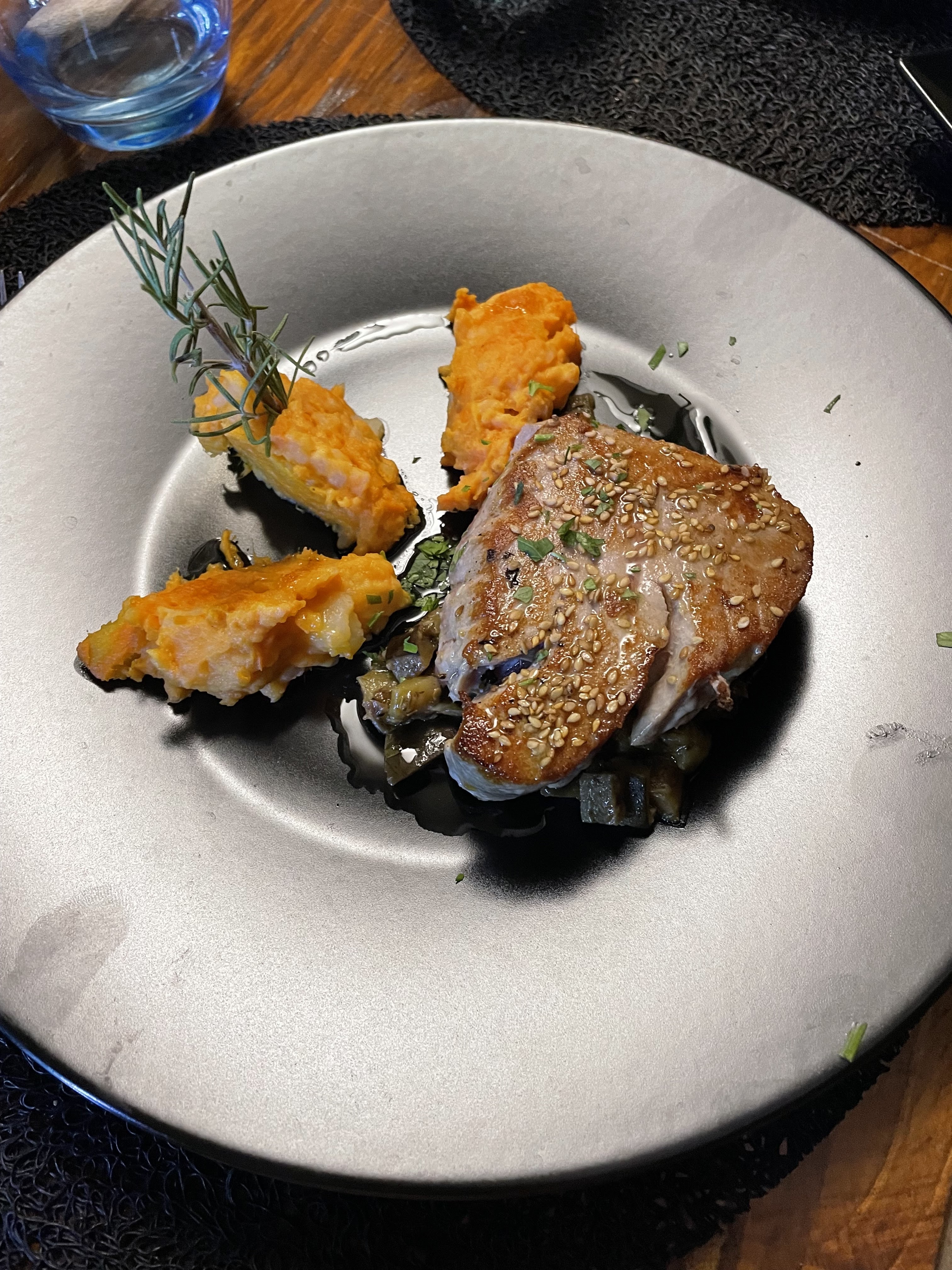 Très bonne soirée. Le menu poisson est très bien pour un tarif correct (25€) et une belle présentation - le mi-cuit de thon était par contre un poil trop saisi à mon goût. L’ambiance dans la ruelle mi-éclairée de la citadelle est sympathique et le service efficace