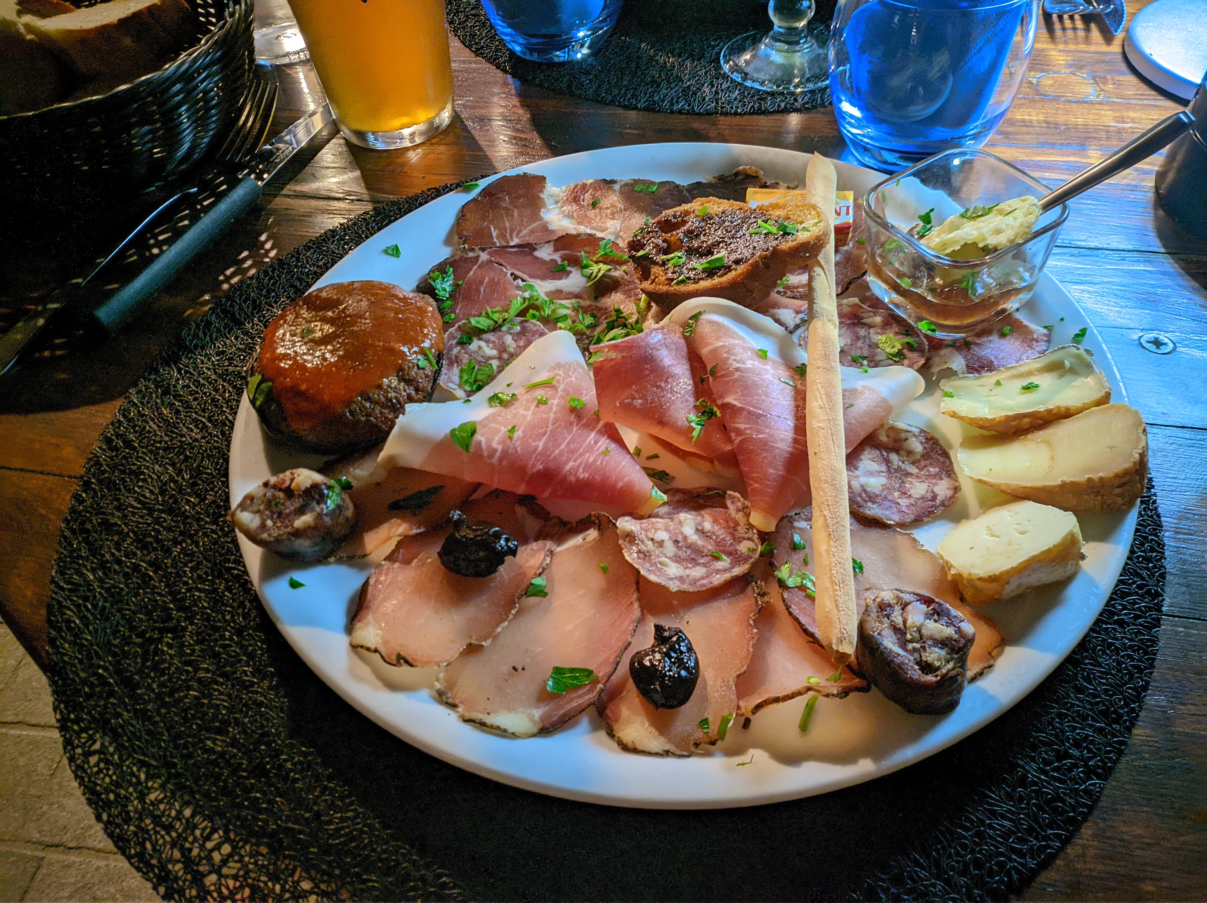 Nous avons partagé une belle planche découverte (charcuterie, fromage et aubergine farcie). Les produits sont de très bonnes qualités, et le service au top !