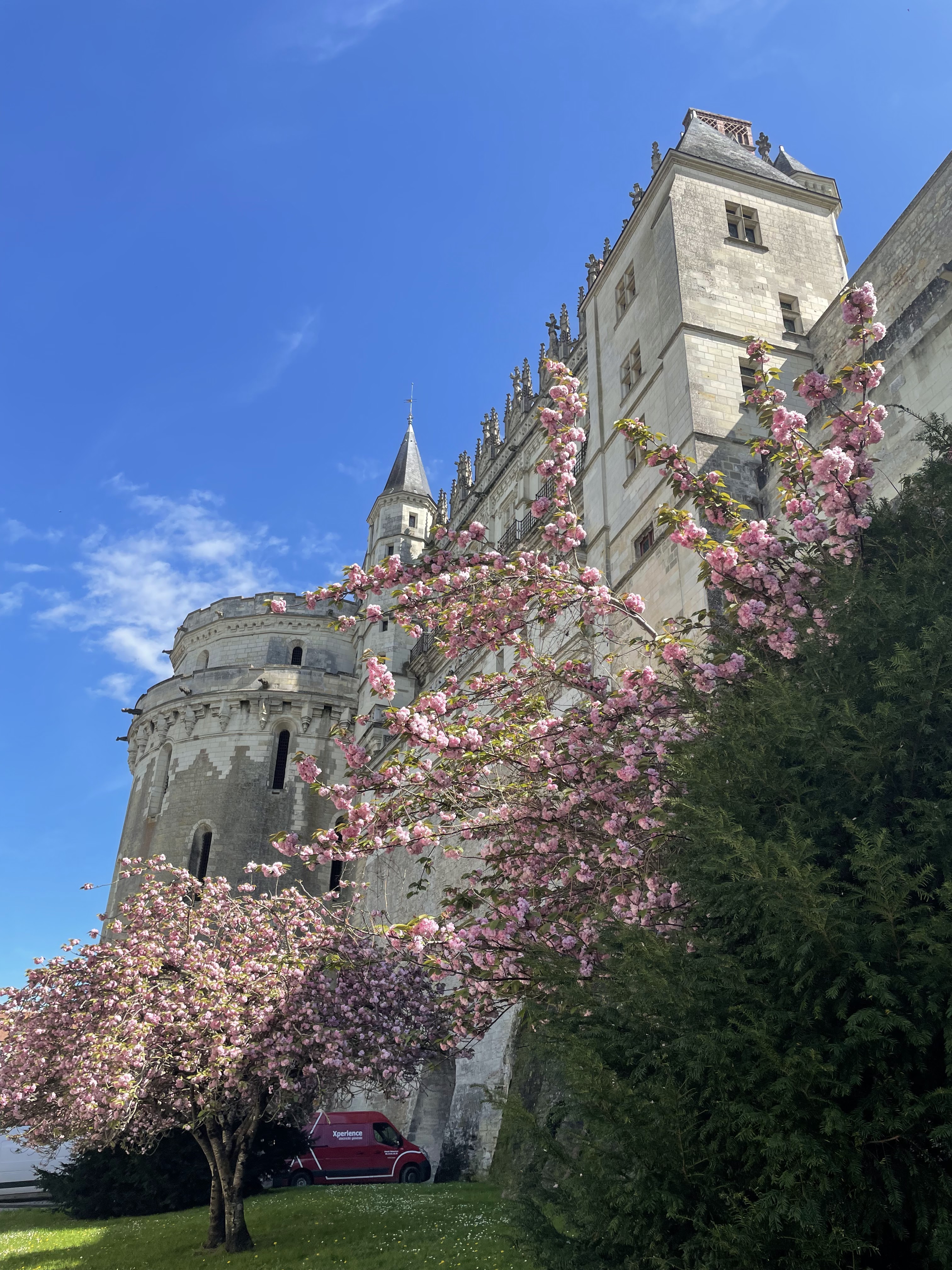 Un endroit agréable pour un café ensoleillé sous le puissant château d'Ambroise