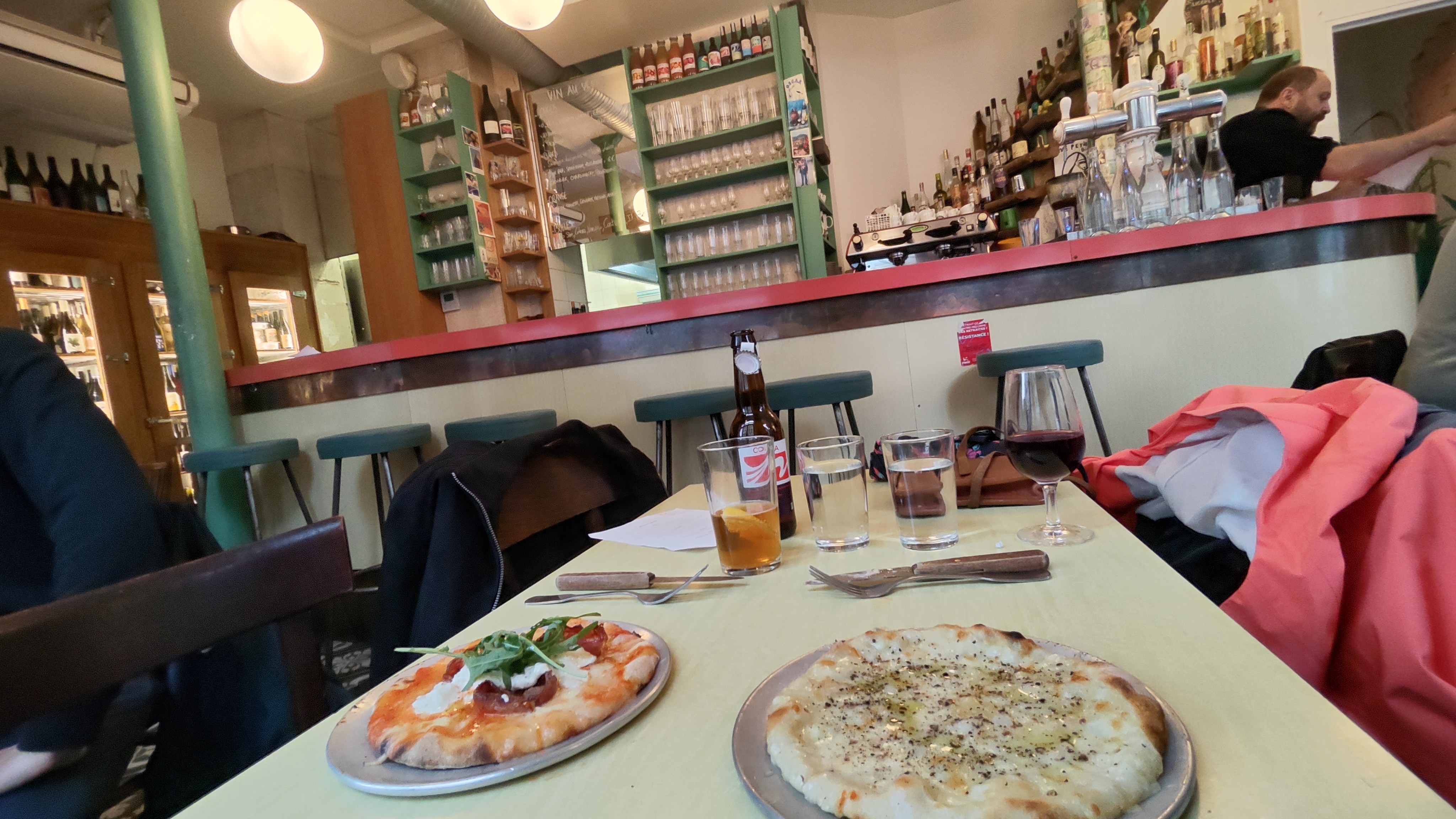 Service très moyen mais bons vin nature et pizettes cool (malgré le prix)