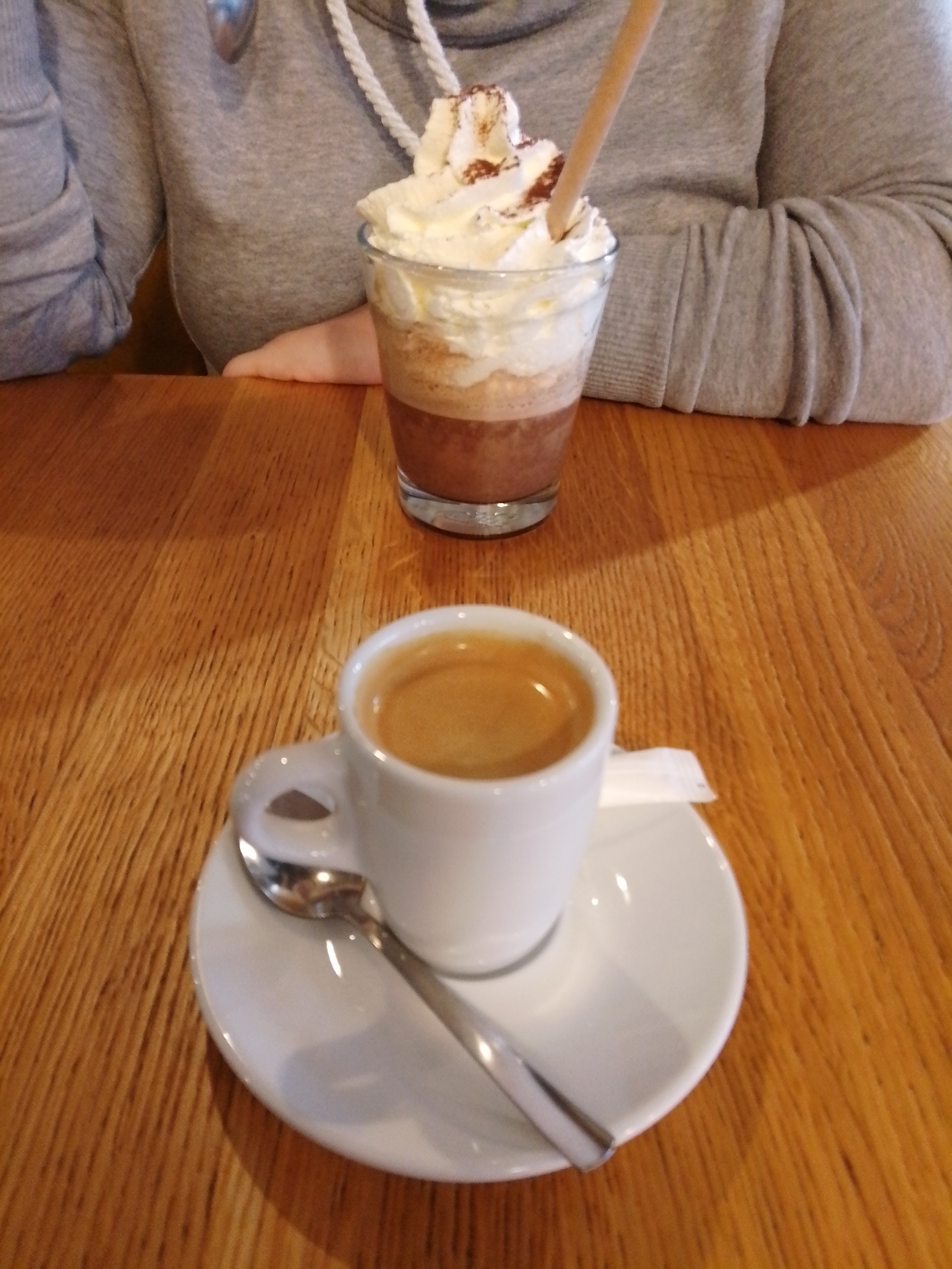 Pause café très agréable dans un cadre médiéval mais sur une place qui mériterait d’être sans voitures…