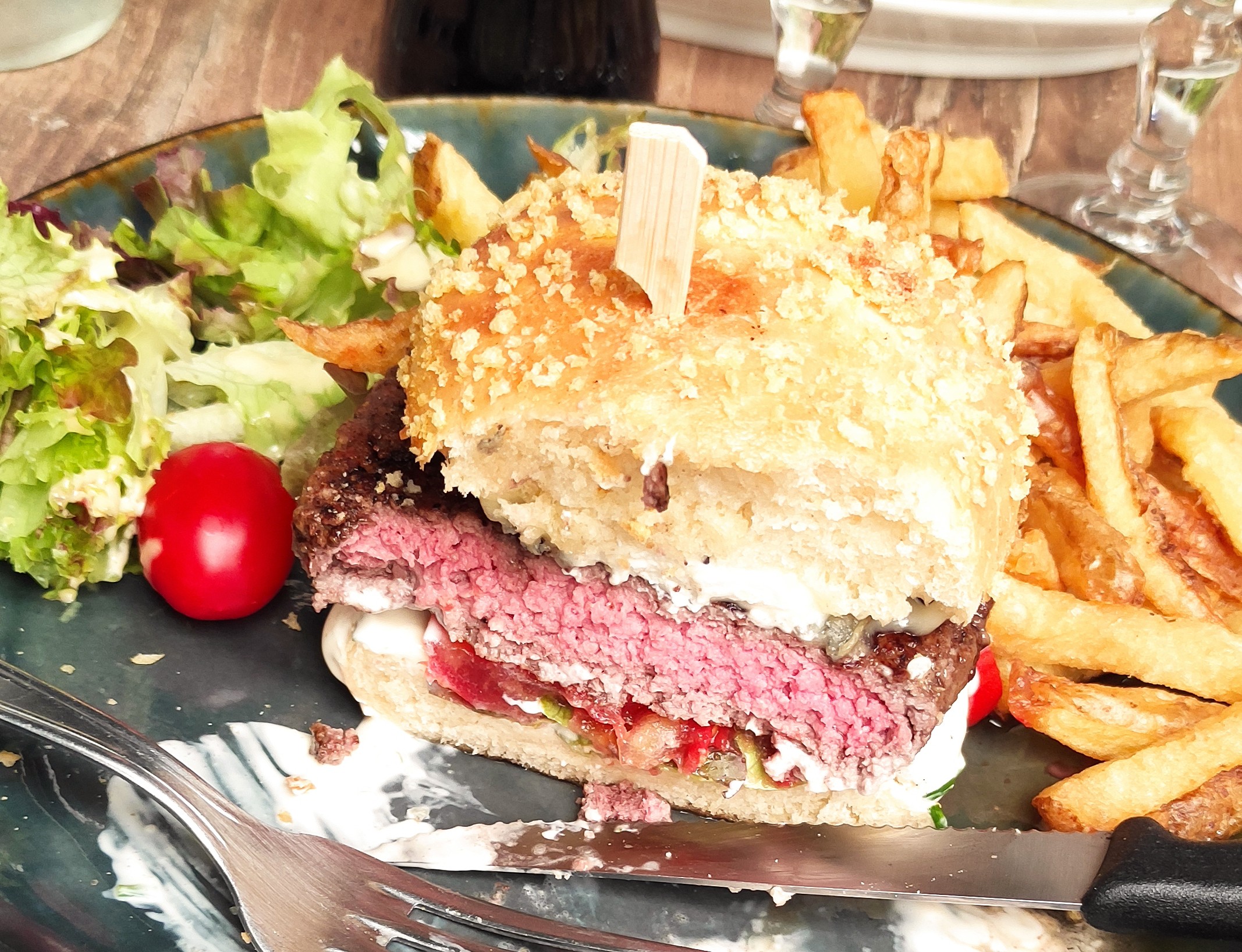 C’est ni très bon ni très mauvais. L’andouillette était très bonne selon mon mari, mais mon burger était moyen. Le menu enfant est cher, il y a seulement un plat et un dessert, sans boisson pour 10€. C’est assez cher pour ce que c’est. L’emplacement est idéal pour visiter le château par contre.