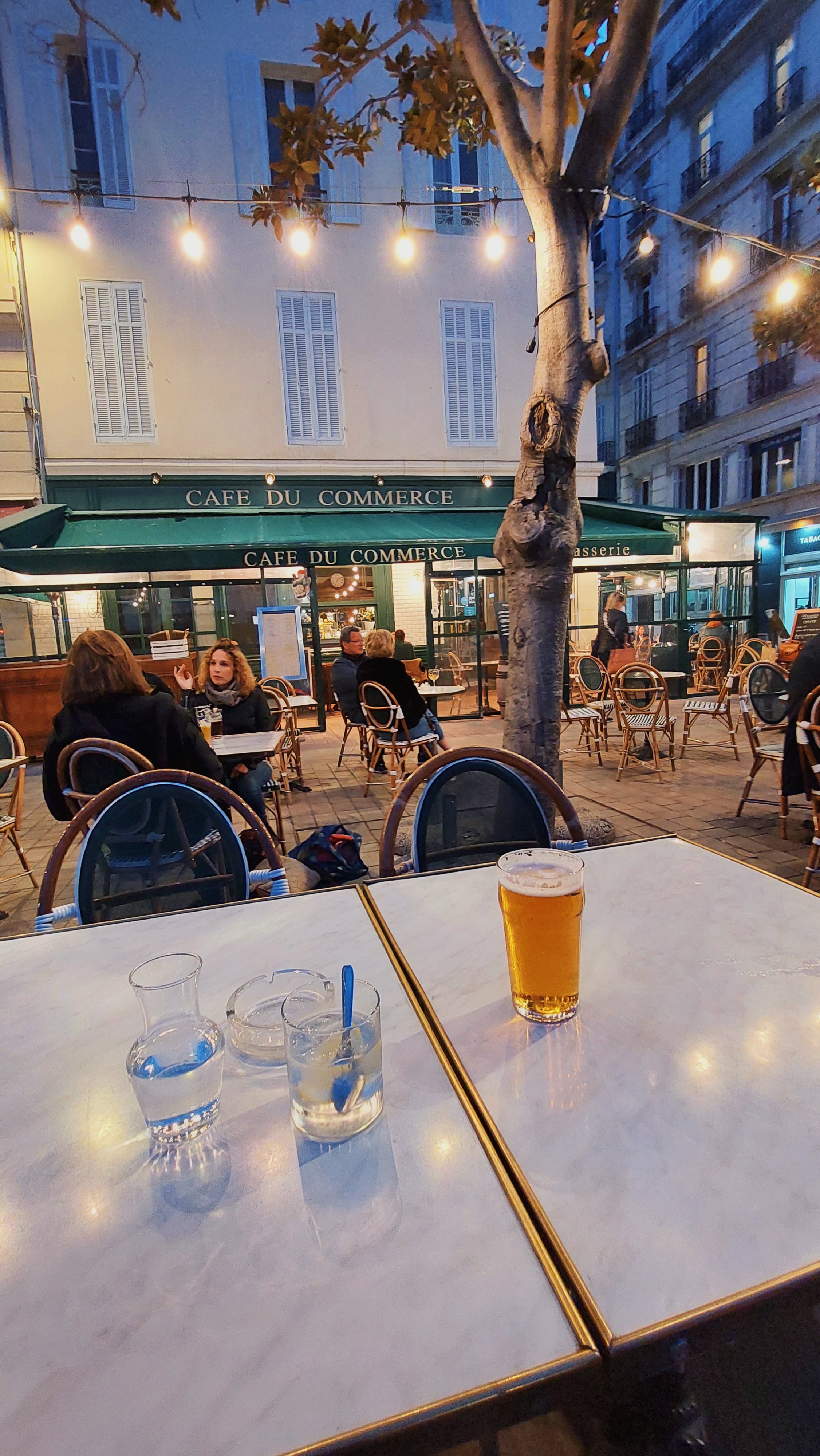 Sur la place donnant sur la Canebière, ce café du commerce est en fait un restaurant, qui sert bien entendu des boissons hors service de table.