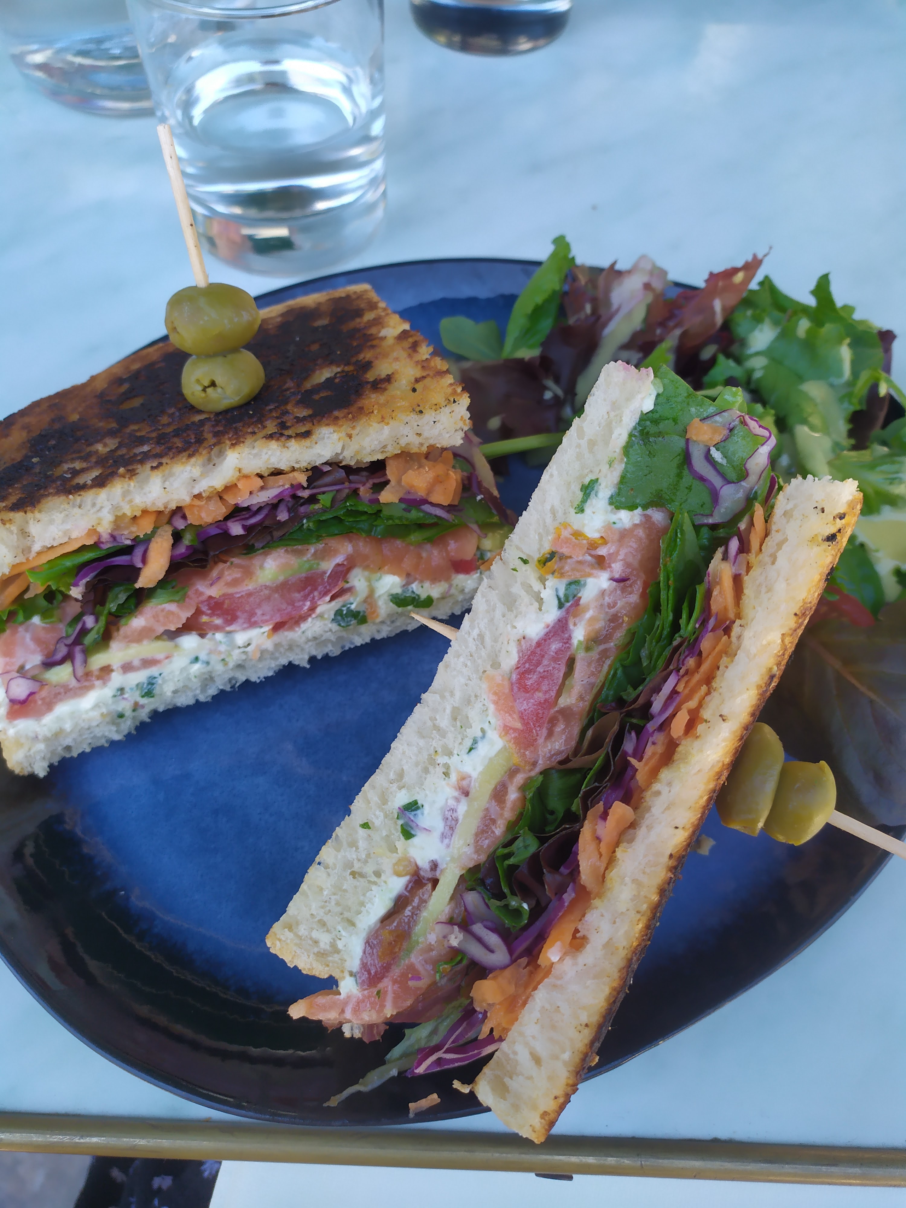 Cadre agréable. Personnel parfois professionnel parfois moins. La,salade césar est vraiment à améliorer, le poulet servi en petits morceaux panés réchauffé puisque c'était trop foncé. Quantité de salade pas suffisante, qualité de la salade à revoir. Rapport qualité prix très moyen...si j'y retourne, j'essaierai peut être autre chose mais éviter la salade césar. Le café est bon et le décor magnifique.