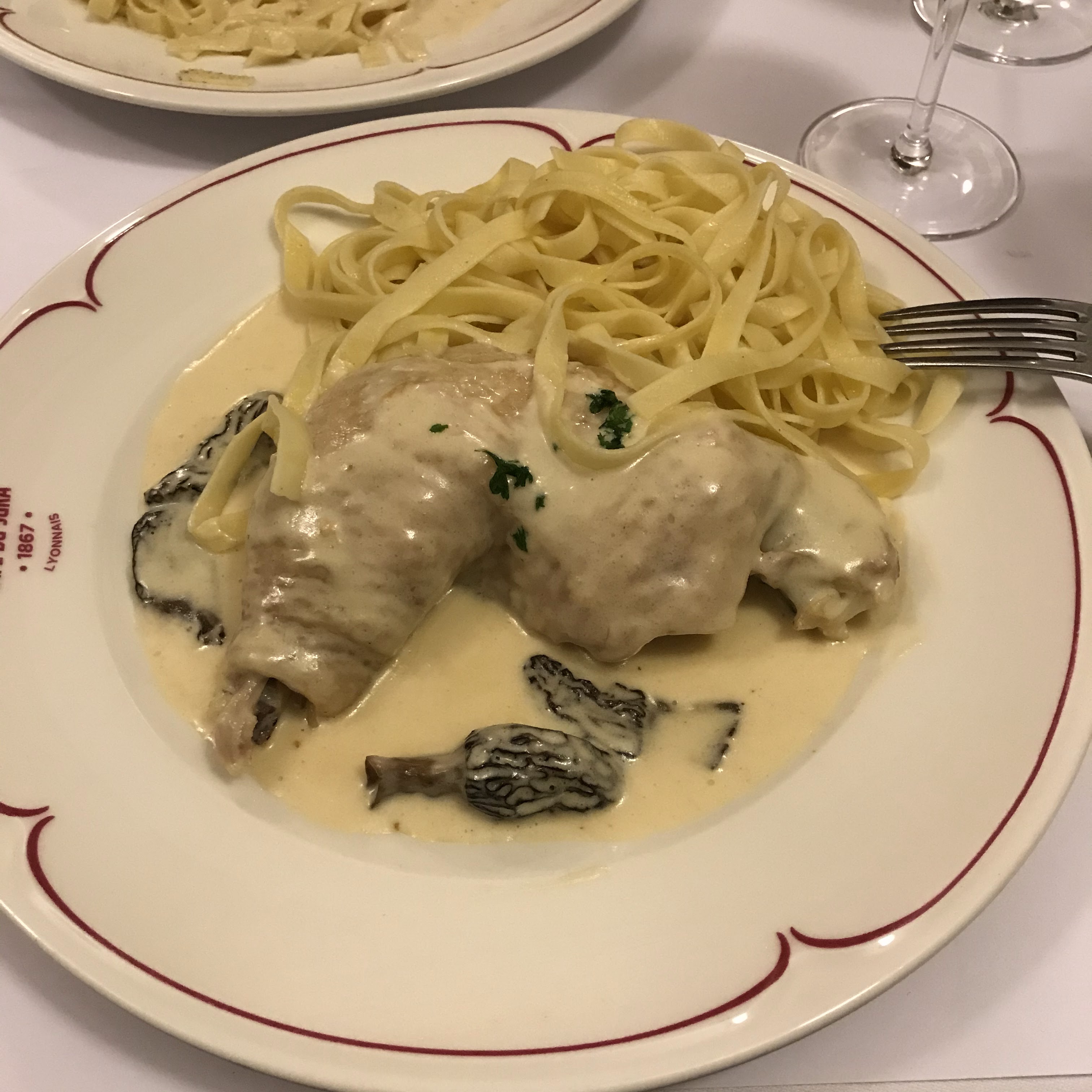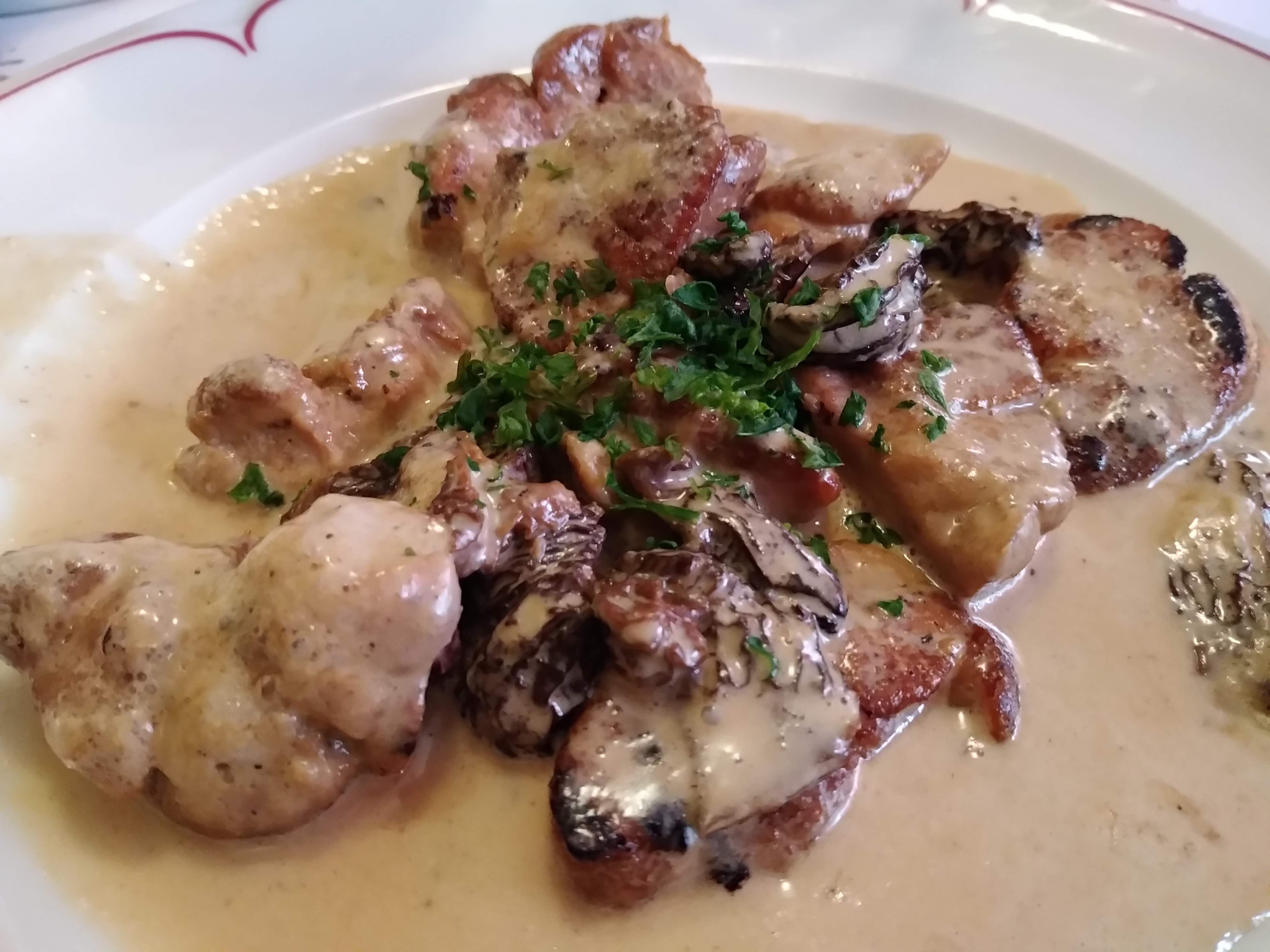 De la sciure au sol vous accueille dans ce bistrot sans âme. 25€ pour une cuisse de poulets aux morilles ré-hydratées avec un quart d’assiettes de tagliatelles était trop cher payé.