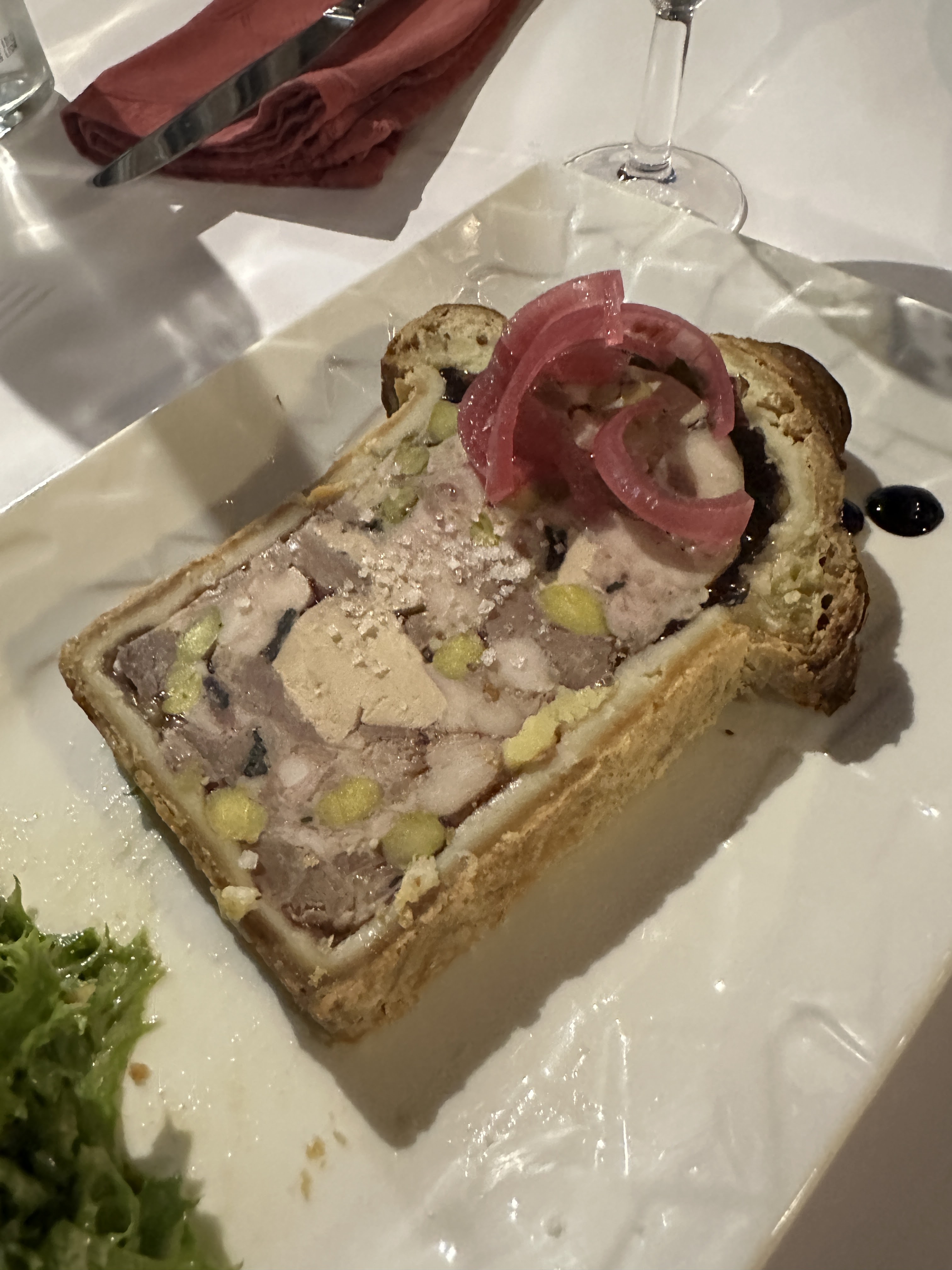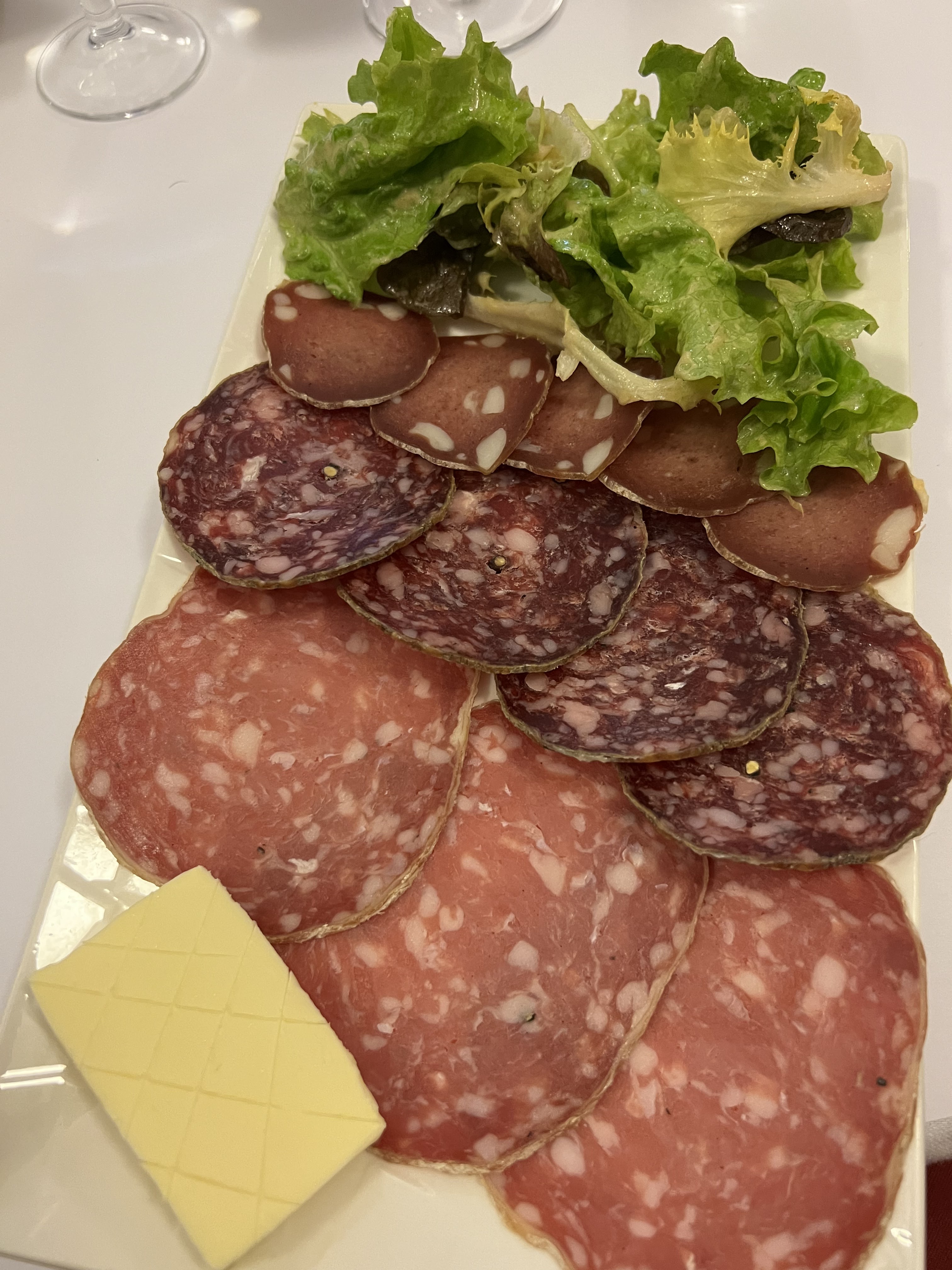 Malheureusement une assiette de charcuterie très très peu garnie pour 15 € (12 rondelles) Cassolette d'escargots...aux épinards? Nouveauté je pense.etc... Le jeune serveur au top🤟🏻 Déçu, le bouchon était bouchonné. Mais ne peux que mieux faire, bonne suite
