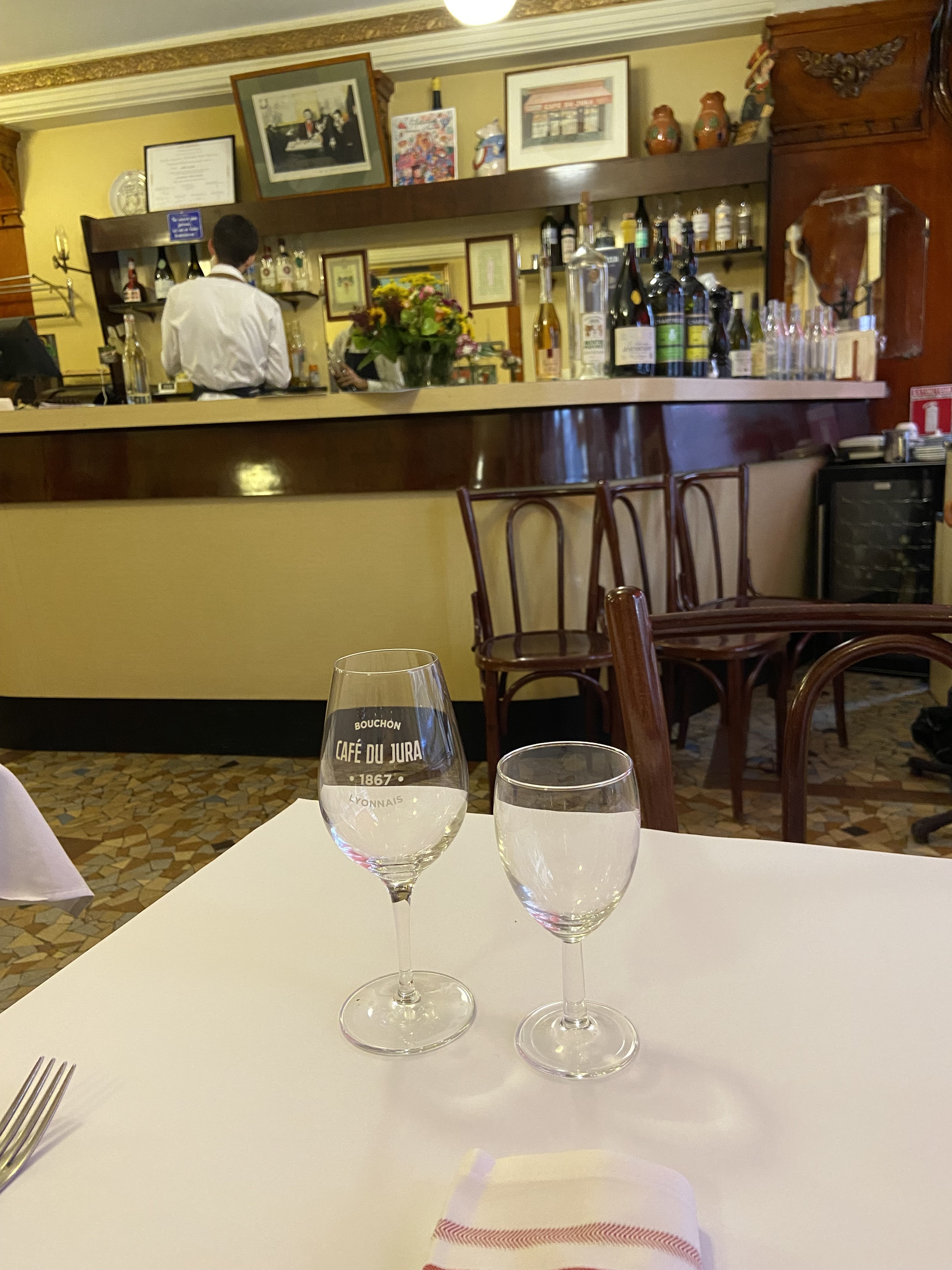 mon mari avait établi une liste de bouchons, en connaissant deux autres, à notre belle-fille et à notre fils, en pointant Le Café du Jura: eh bien, ils ont été emballés par la qualité du mangé bien que n'ayant pris qu'un plat chacun, l'accueil et l'authenticité du décor; nous avons prévu d'y retourner ensemble dès le printemps.