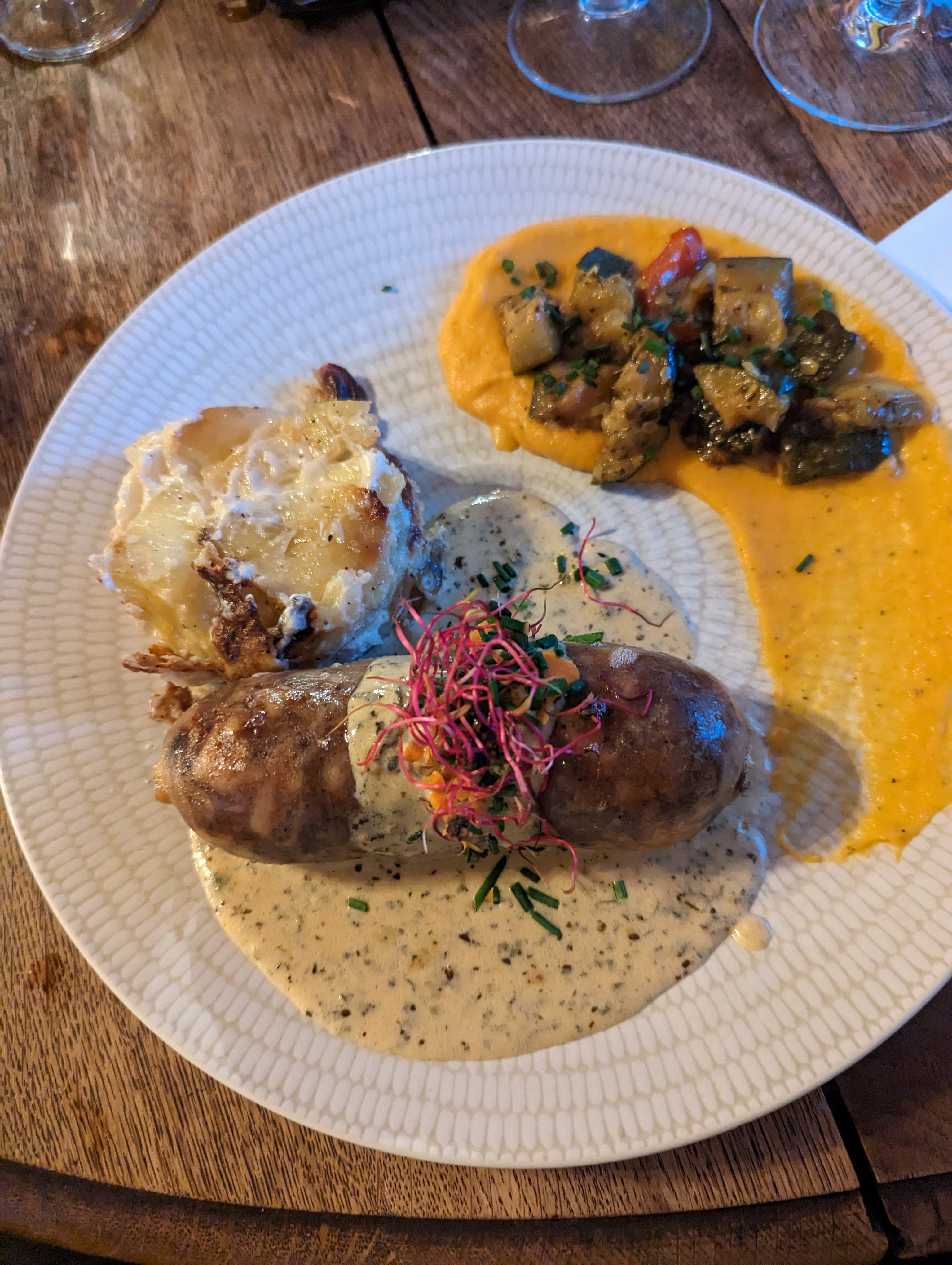 Comme d’habitude excellente cuisine, entrée très copieuse je n’ai même pas eu la place pour le dessert. Petit bémol : la carte évolue assez peu, j’apprécierais plus de changements au fils ses saisons !