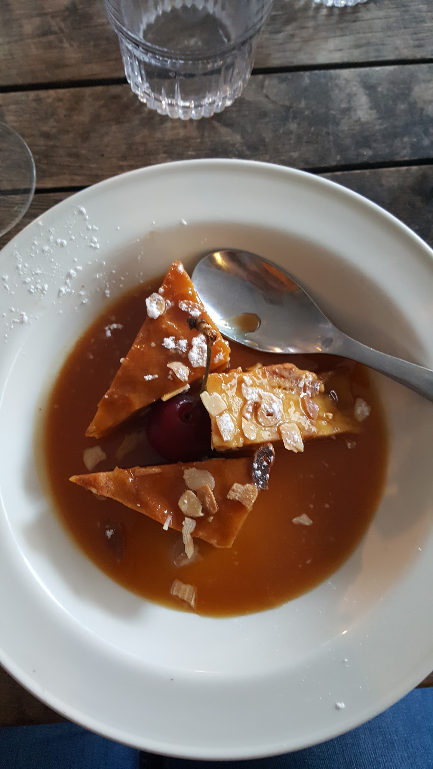 Succulent repas ce midi avec un plat de viande à la sauce parfaite et un dessert original peu sucré à faire changer d'avis les non adaptes du sucré. Après un risotto 20/20, je passe que cette 2e visite ne sera pas la dernière !