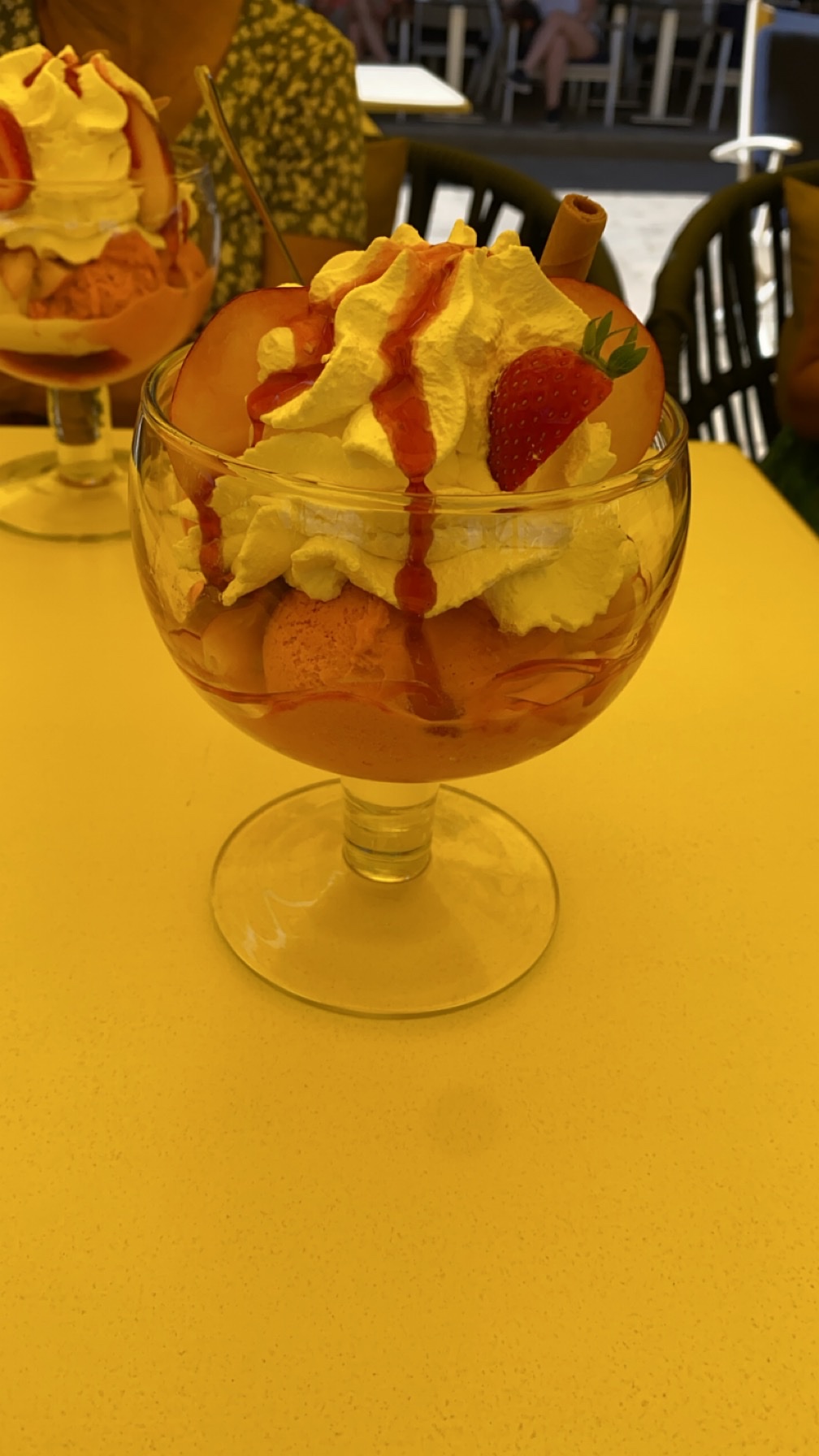 A éviter pour les glaces en tout cas. La pêche Melba ne ressemble en rien à ce qui présenté sur la doc. Rares fraises et un seul morceau de pêche. Très très décevant. Mais le serveur nous confirme après avoir échange avec la professionnelle du glacier que c'est comme ca