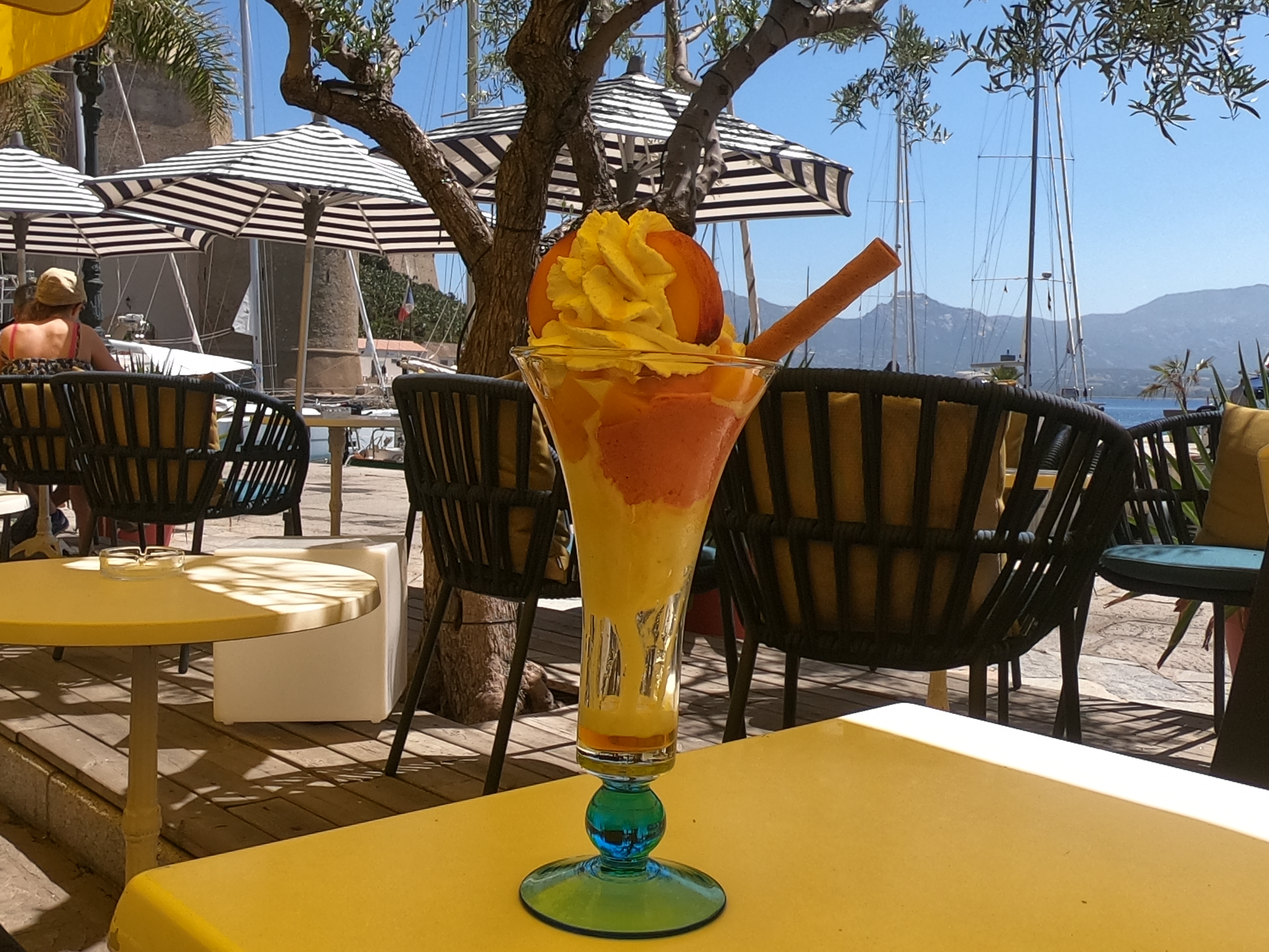 Très bien situé au port de Calvi. Une étoile supplémentaire pour ça. Ce que nous avons mangé, de la glace à la pêche Melba et un hamburger, était impeccable et la vue était magnifique.