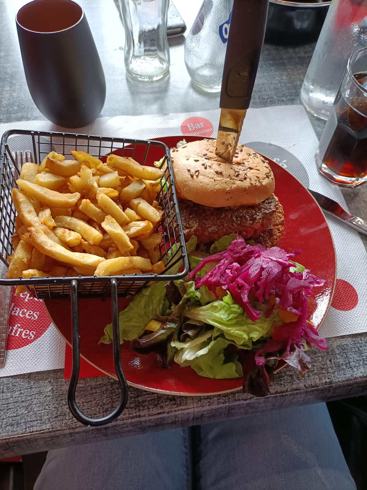 Après plusieurs tentatives, toujours les mêmes problèmes… Erreur de commande, plats servis avant l’apéritif, des hamburgers renvoyés car le pain et le cheddar était cramé ! Ils sont revenu tel quel simplement le cheddar gratter même pas pris la peine de remettre une tranche…