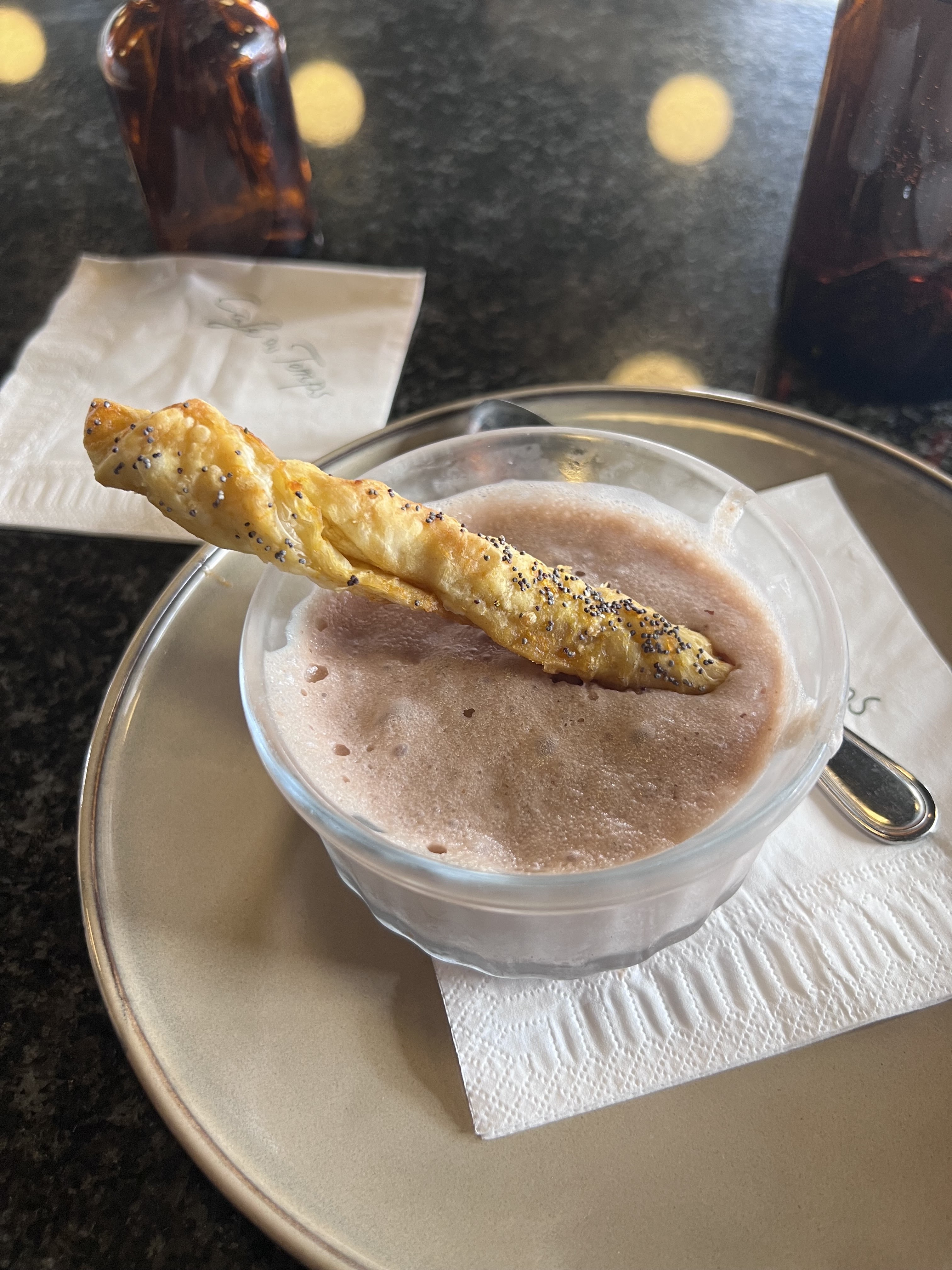 Une soupe au pistou à tomber par terre avec une cuisson de chaque légumes au top et un croustillant parmesan divin! De l’ail (possible sans) et du basilic à profusion 😋 Je reviendrai pour l’assiette libanaise très vite car elle a l’air délicieuse. Bravo en cuisine et notons aussi l’accueil parfait.
