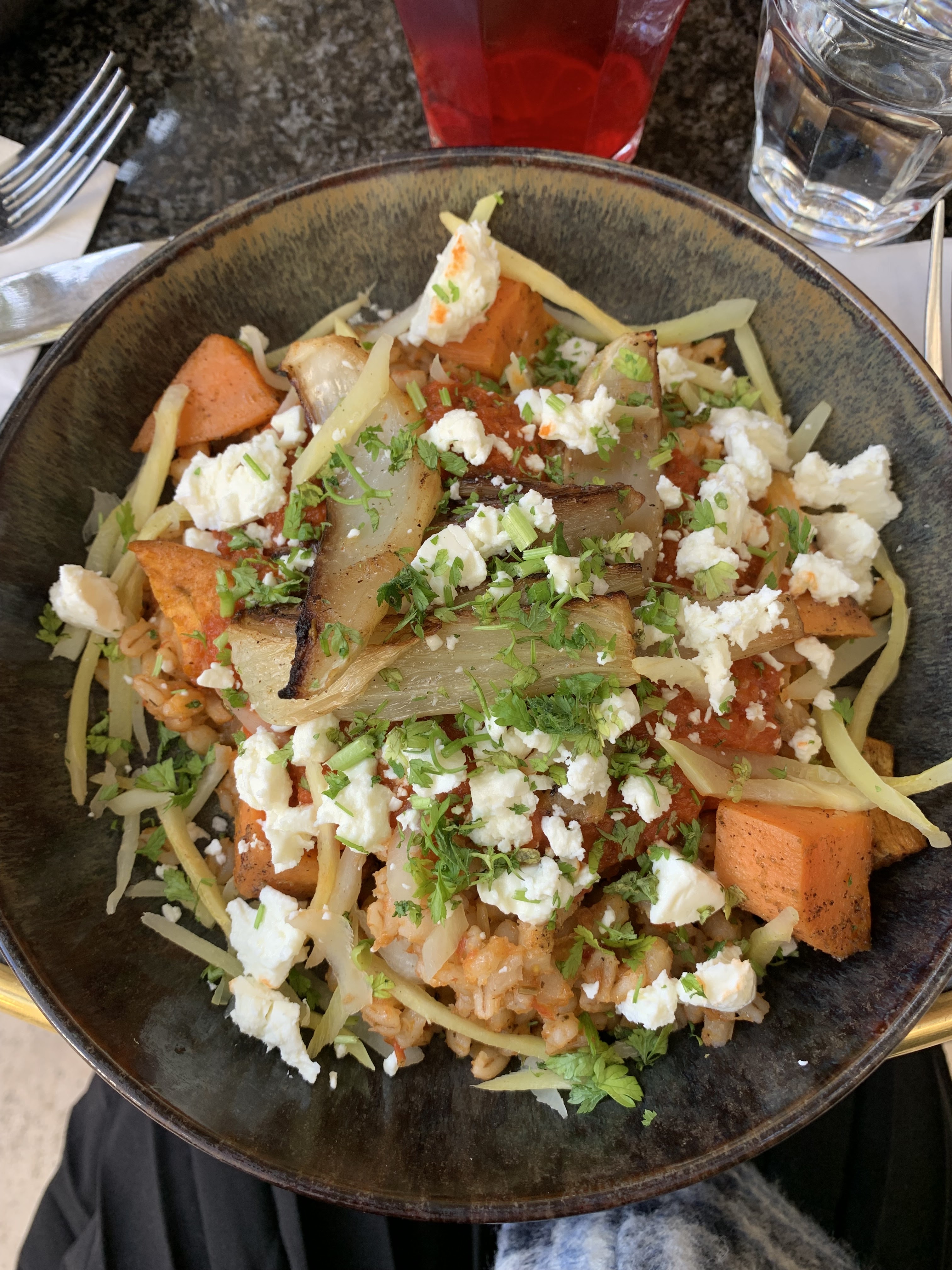 Très bonne adresse pour les végétariens. L'assiette libanaise et les keftedes étaient très bonnes et en quantité convenable. La tartelette coco-ananas était excellente. Nous avons trouvé le prix du vin au verre un peu cher et l'attente du plat un peu longue. Cependant nous sommes globalement très satisfaites de ce repas et les serveuses sont très agréables et efficaces.