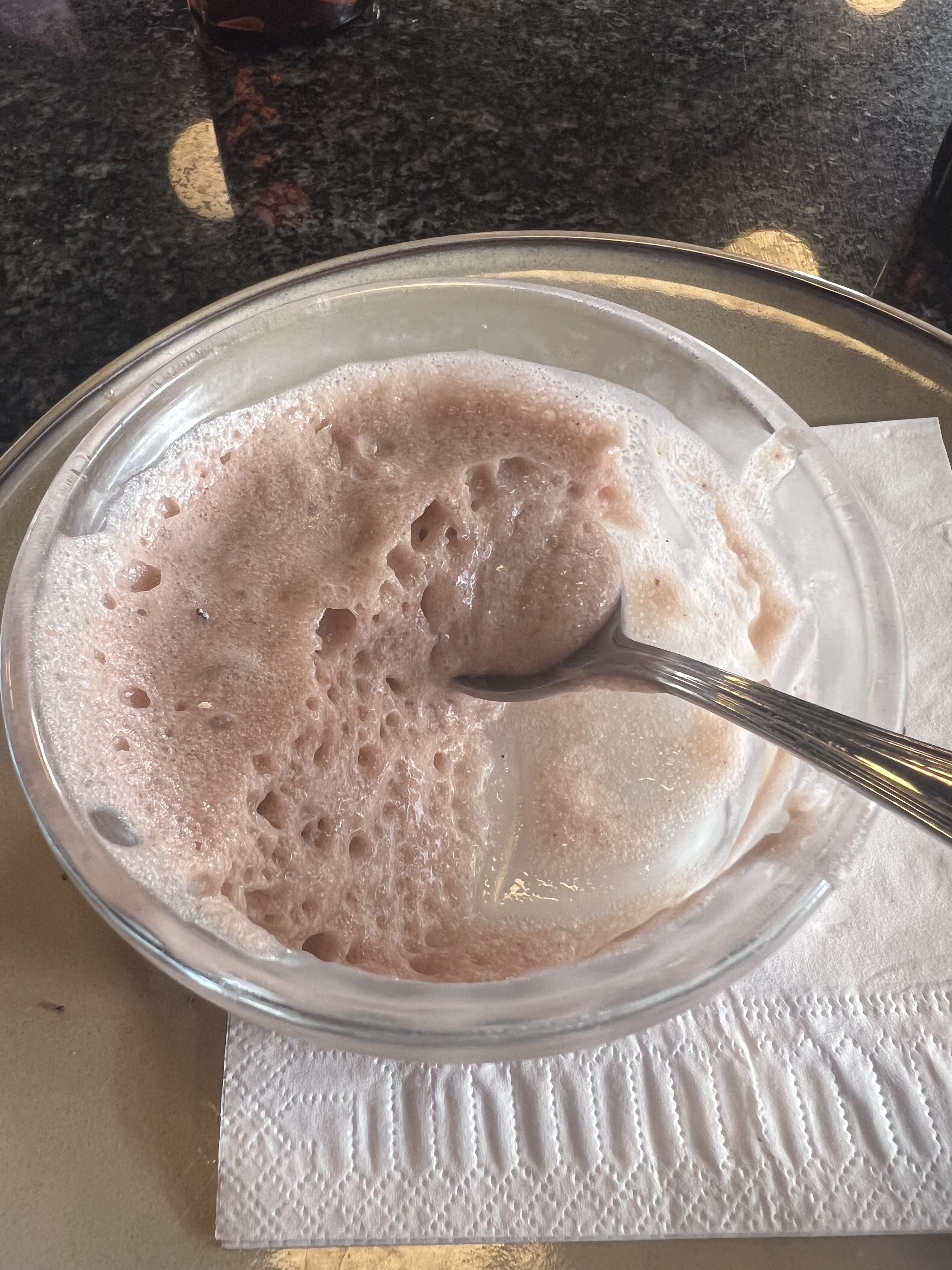 La nourriture était bonne, mais nous avons eu une mauvaise expérience avec le jus vert ! Il avait le goût du liquide vaisselle ! On dirait que le verre avait des traces, mais sûrement une erreur. Quoi qu'il en soit, c'était bien et ils nous ont offert l'un des repas.