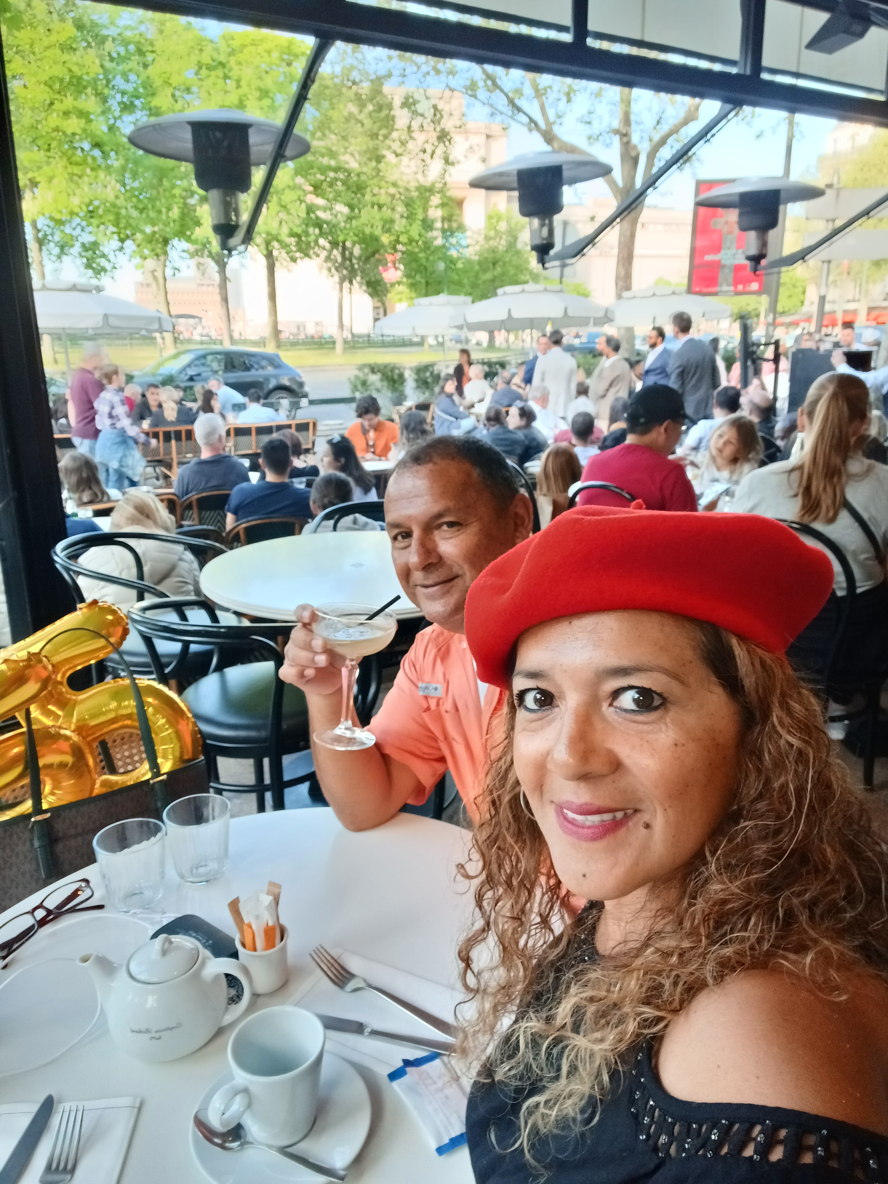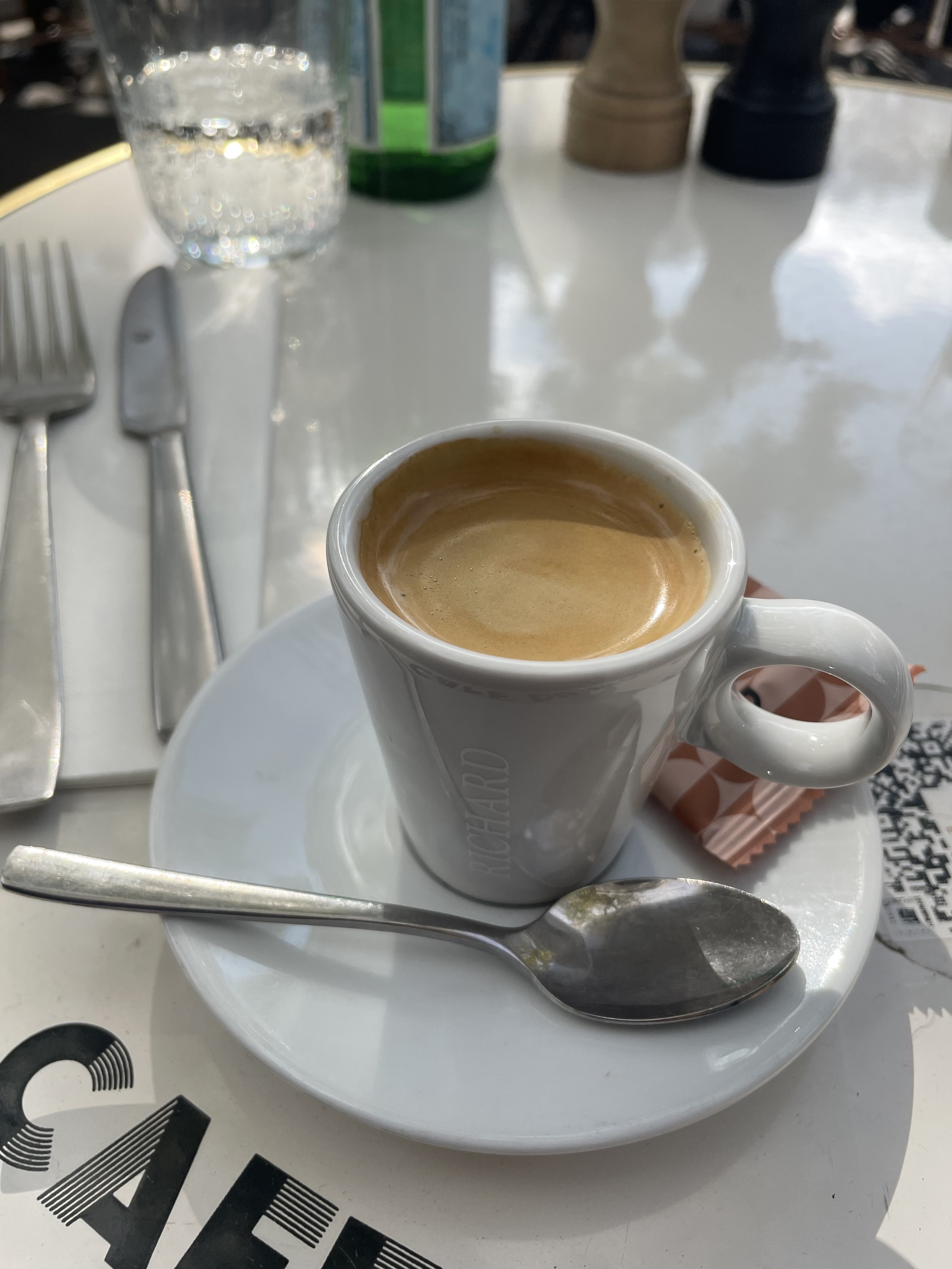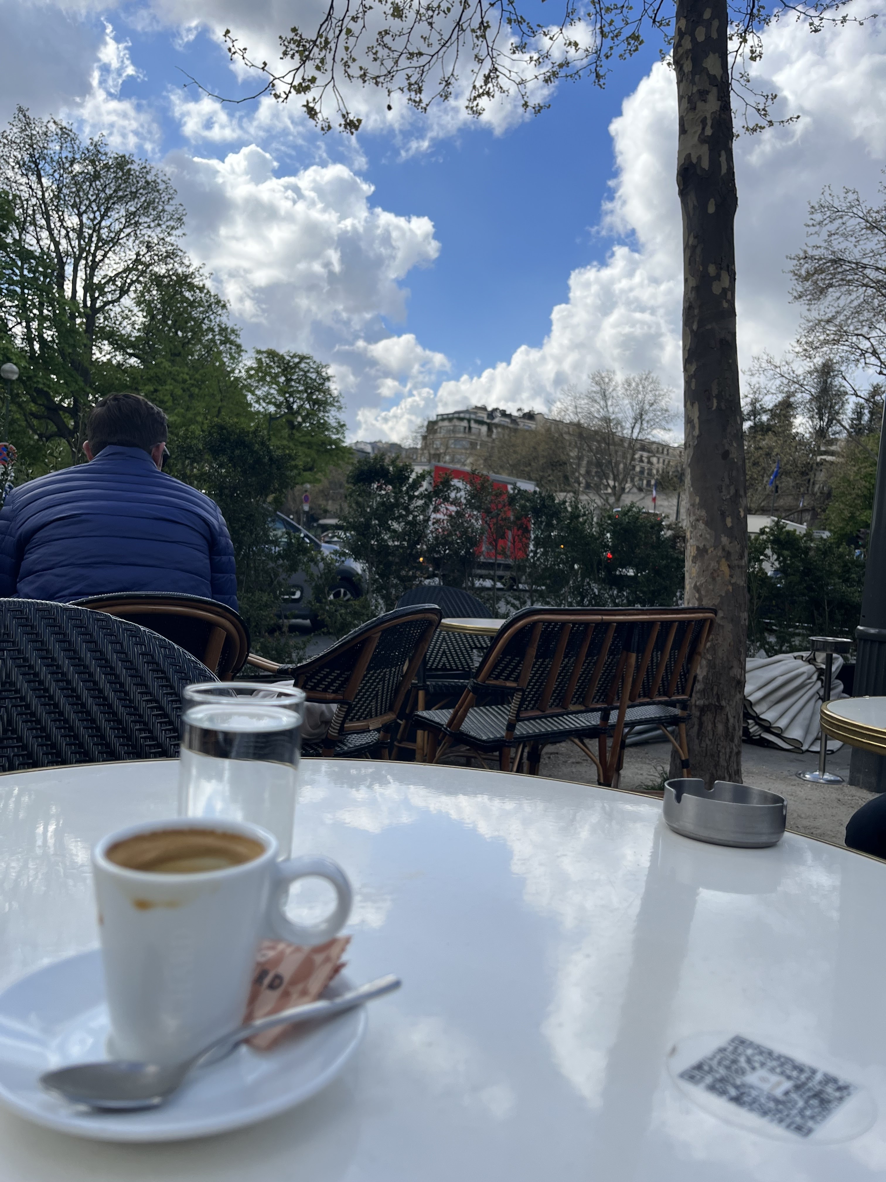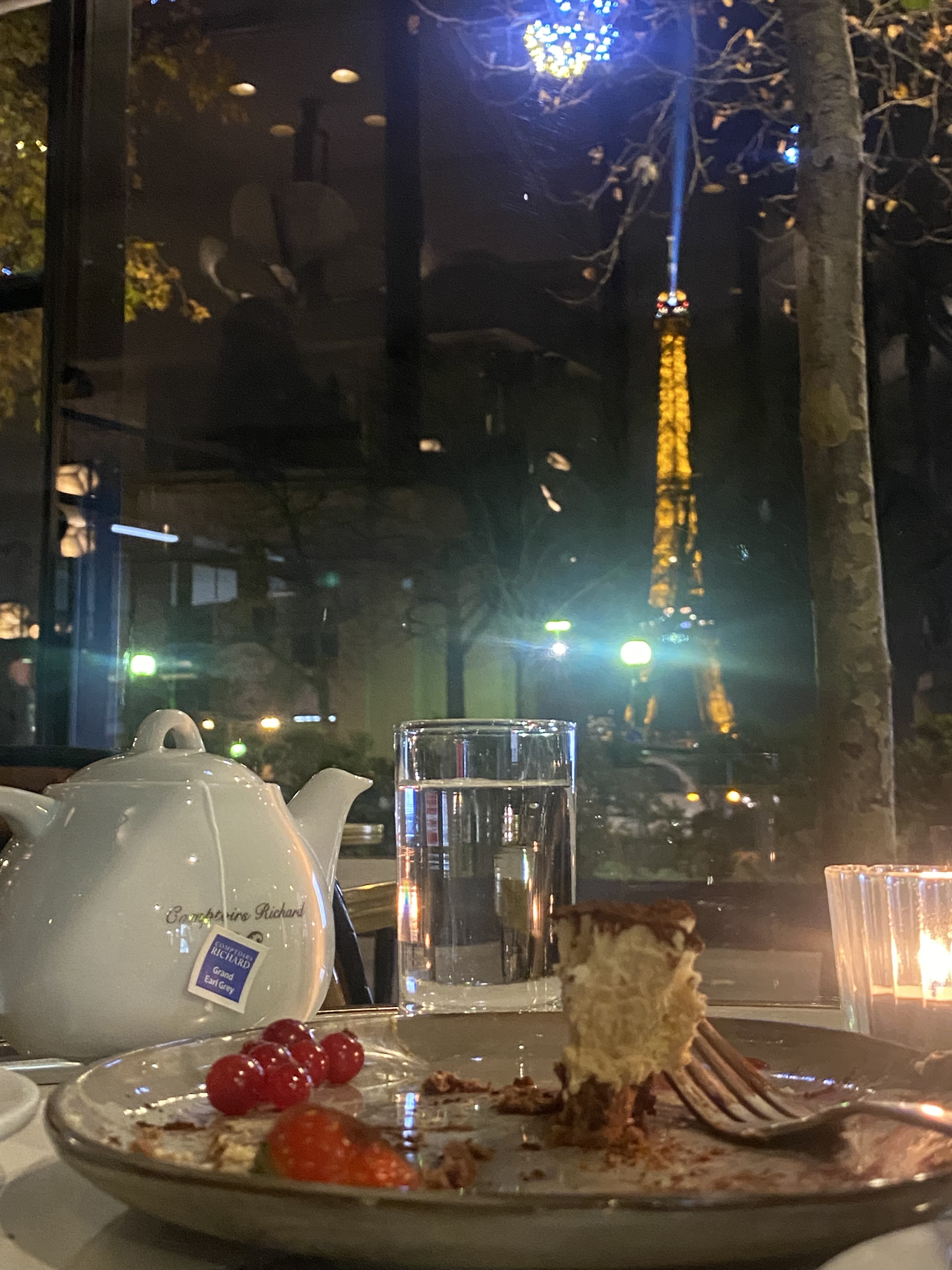Un petit café et un thé pris devant la tour Eiffel un très beau souvenir, dommage que le temps n'était pas au mieux et que les travaux pour les JO casse l'ambiance, mais je recommande ce café le service impeccable.