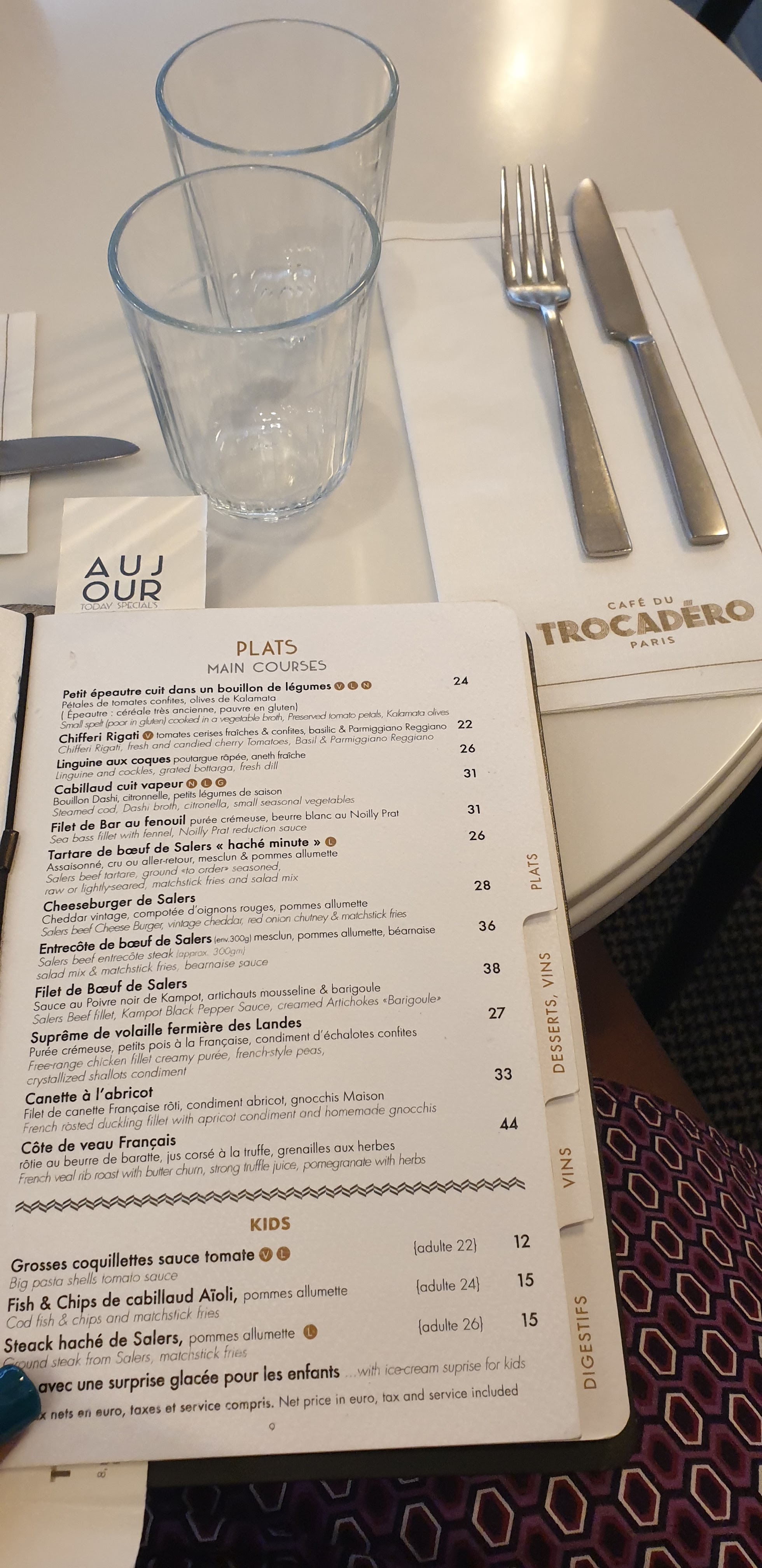 C'était très sympa. Notre serveuse était excellente. Mais c'était tellement cher !!! Ne vaut pas 33€ pour une salade et un petit verre de vin !! Vue fantastique sur la Tour Eiffle depuis le Trocadéro.