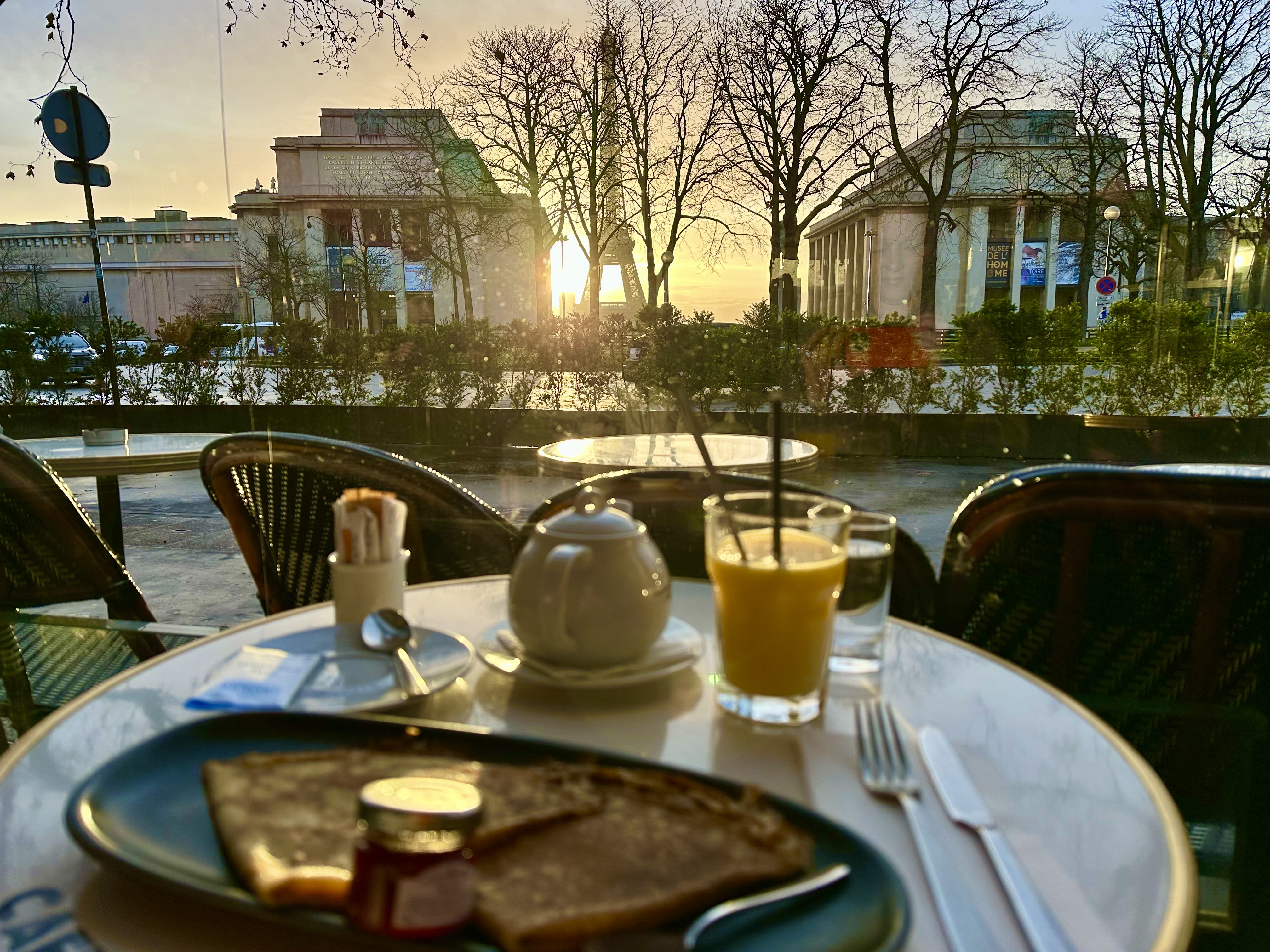 J'y prends traditionnellement mon petit-déjeuner complet. J'aime cette endroit pour son ambiance urbaine, la vue sur le rond point, le Trocadéro et la Tour Eiffel en filigrane. J'ai toujours été bien accueilli par une équipe professionnelle de brasserie parisienne dans son jus chic et bourgeois comme le quartier peut l'inspirer. Les serveurs y sont chaleureux et très attentionnés.
