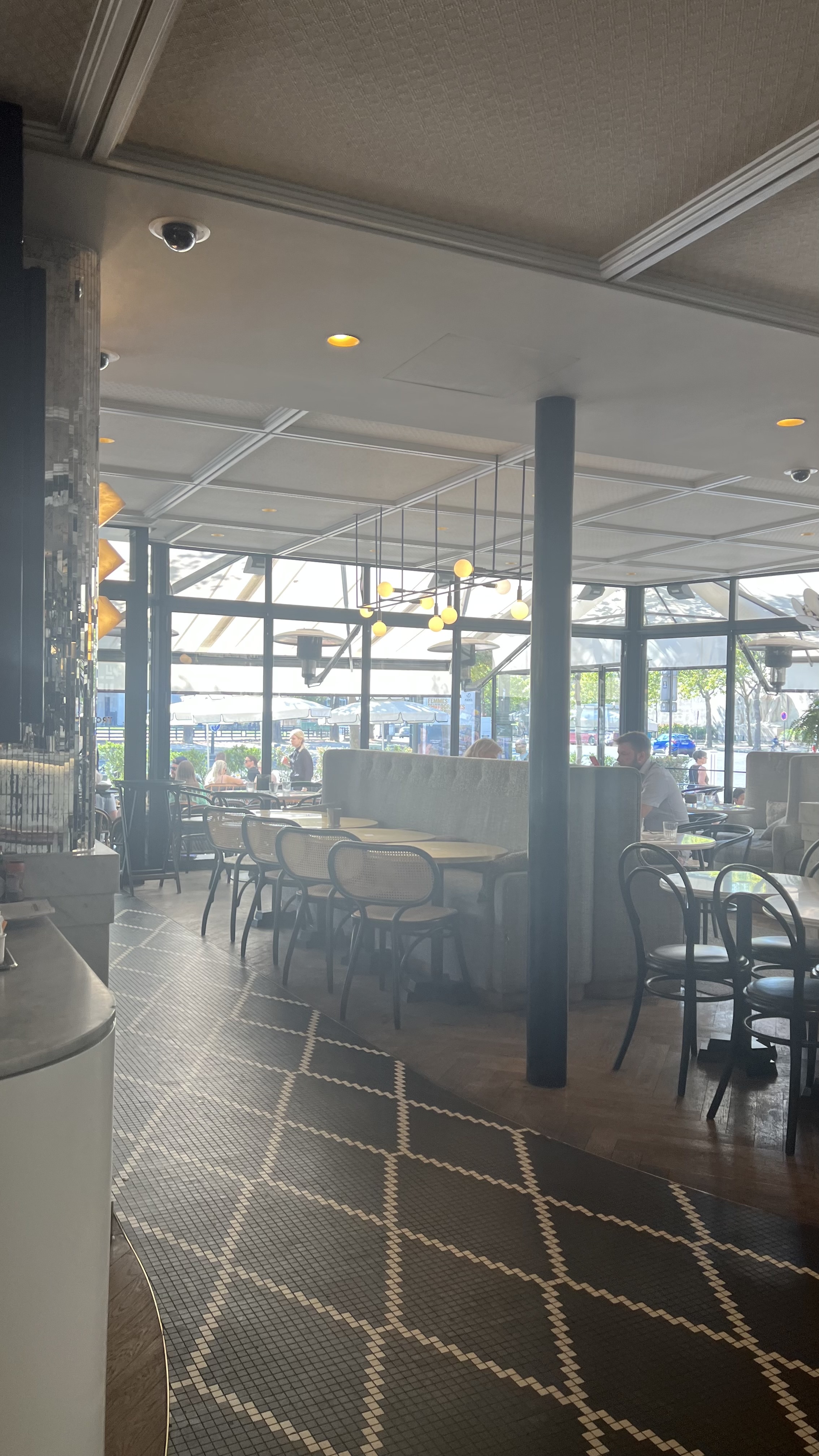 Lieu sympathique pour prendre un verre avec une belle vue sur la tour eiffeil si on a de le chance d'obtenir une table dans la véranda. Cependant, nous y sommes allés début avril et avec le chauffage, et le monde les odeurs mélangées des plats était assez dérangeantes. 18€ l'Apérol Spritz. Nous n'avons pas dîner là-bas. Le service était plutôt rapide.