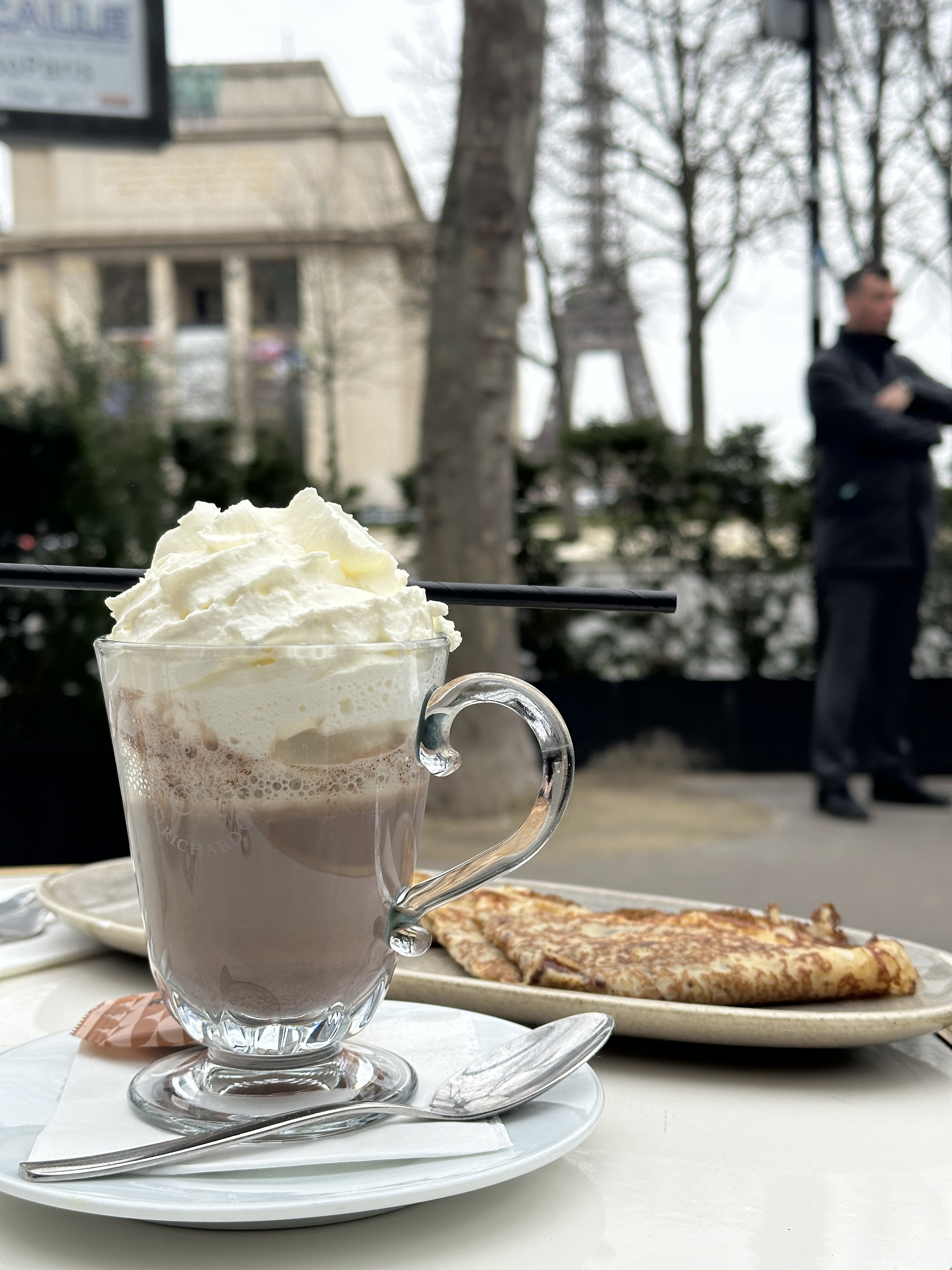 Le café et les gâteaux étaient parfaits pour l'hiver. Belle vue pour la Tour Eiffel. Juste de l'autre côté de la rue. Un peu cher cependant.