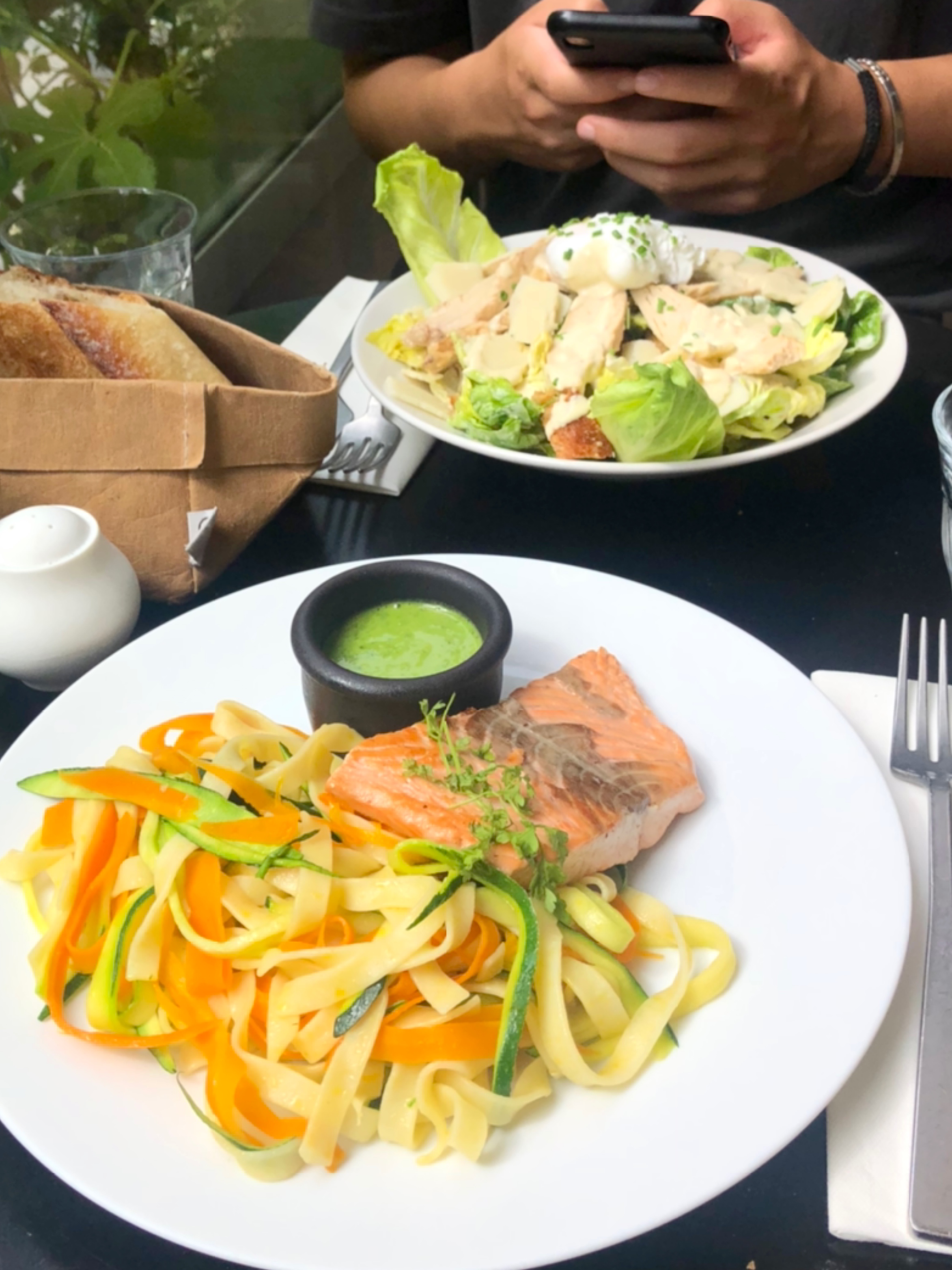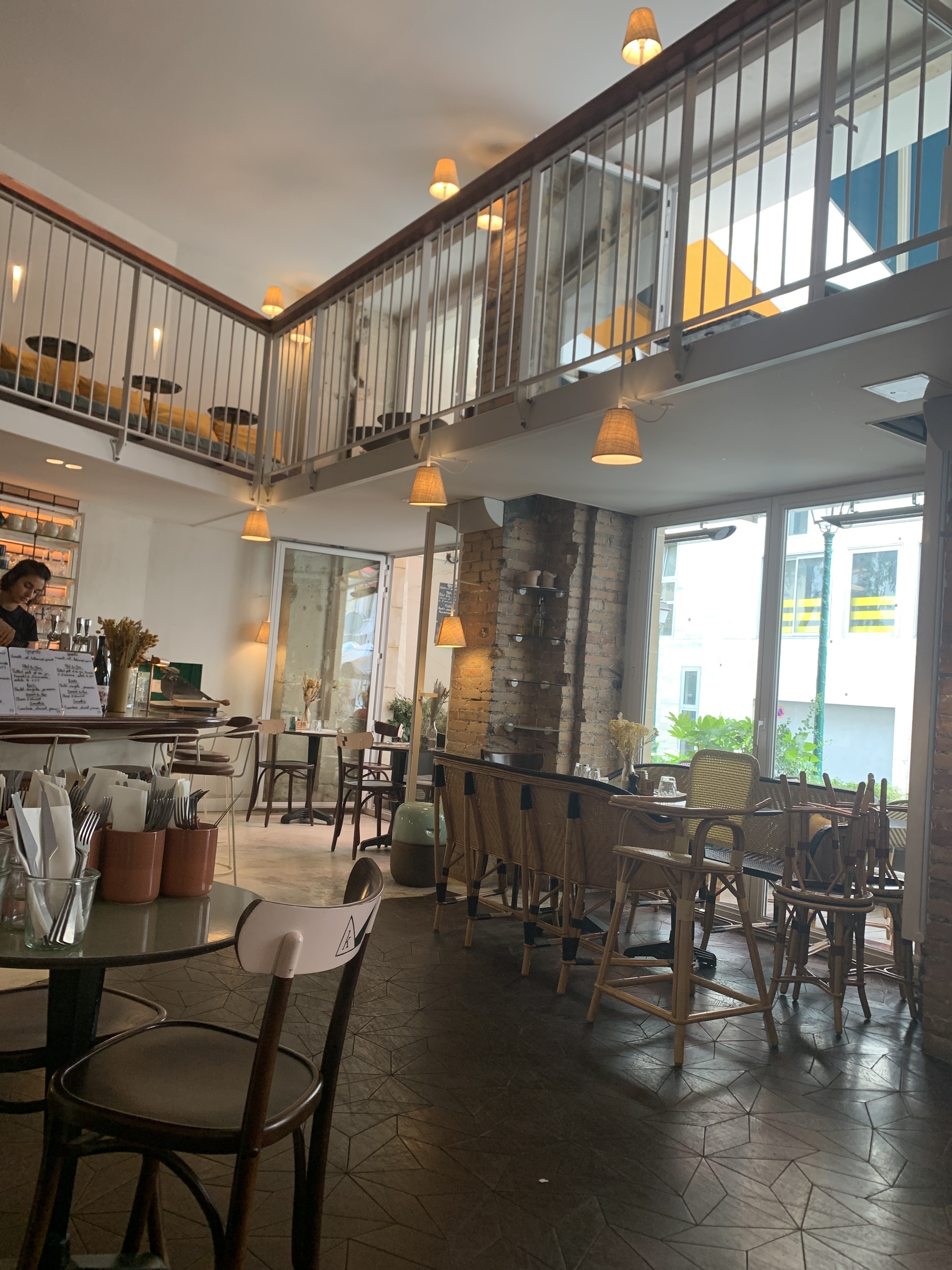 rapport qualité-prix excellent, la nourriture est fraiche et vraiment bonne, le service a été rapide (logiquement lorsqu’il y a du monde il peut être plus lent, mais il faut être compréhensif), la serveuse était super gentille, l’architecture d’intérieur est juste splendide, bref nous avons vraiment adoré le repas, c’est un sans faute ! on reviendra pour un brunch c’est certain ! ☺️